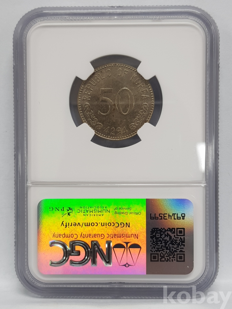 - 4294(1961)년 50환 / 오십환 NGC MS 62 그레이딩 인증 주화