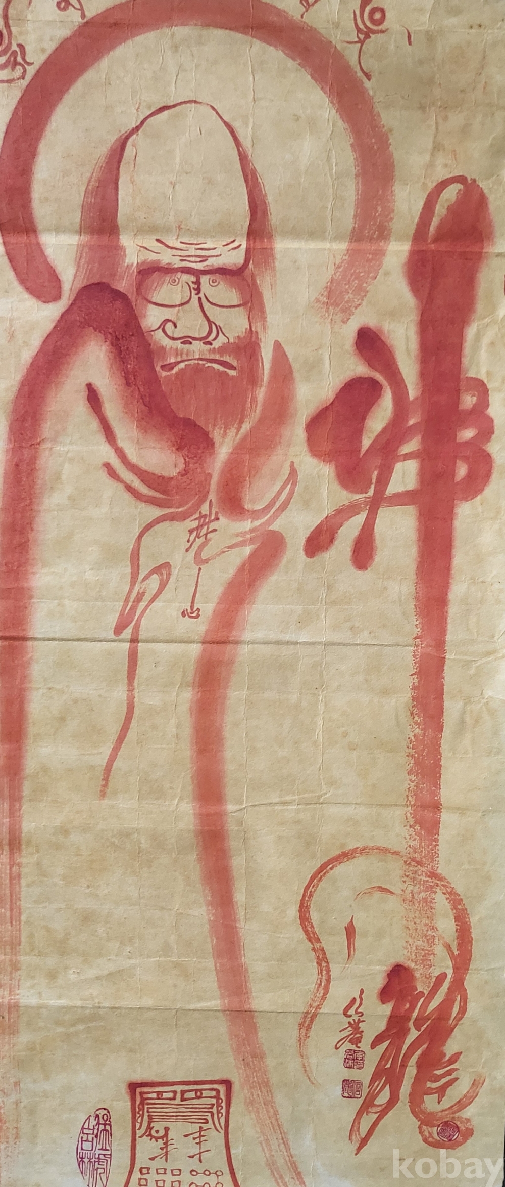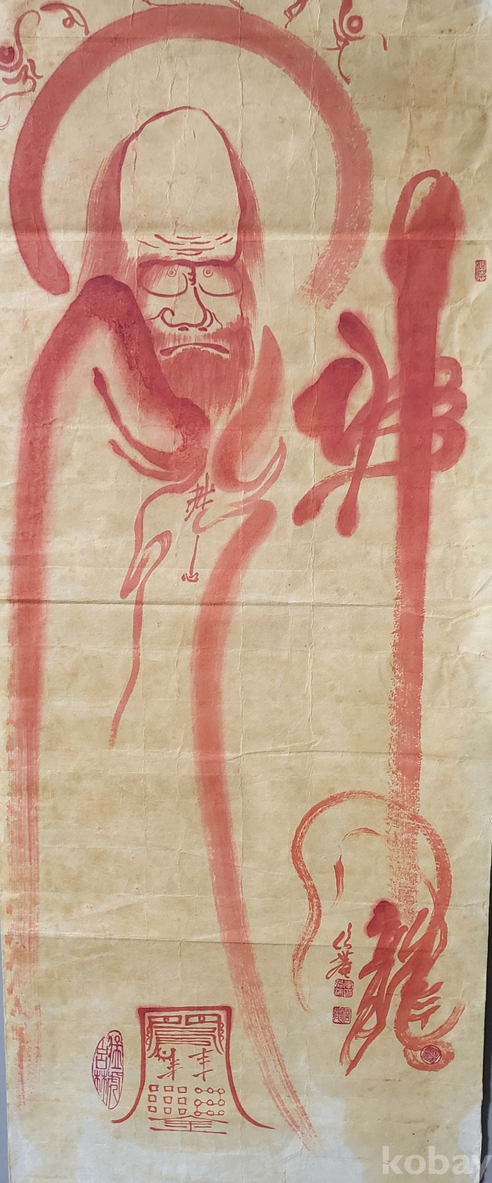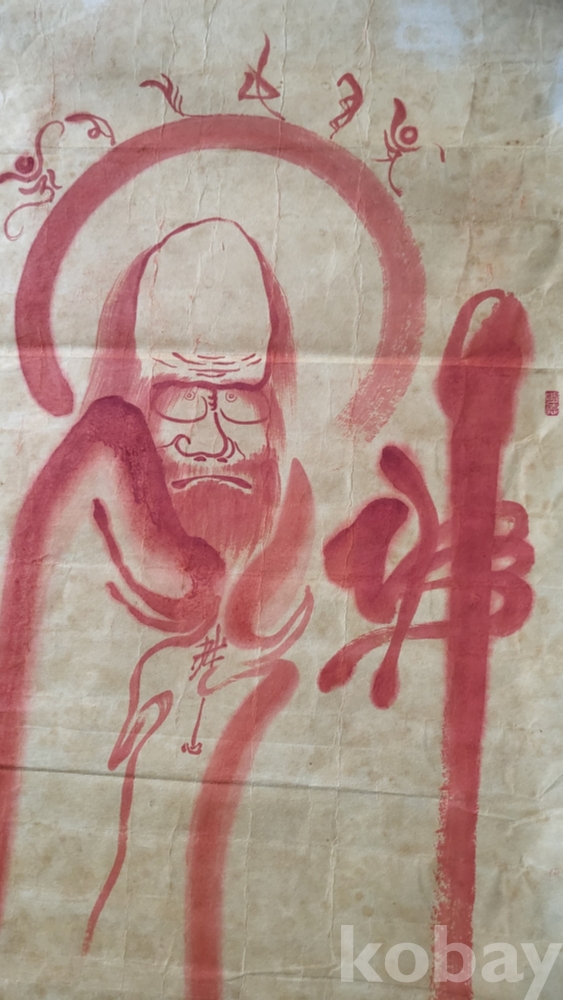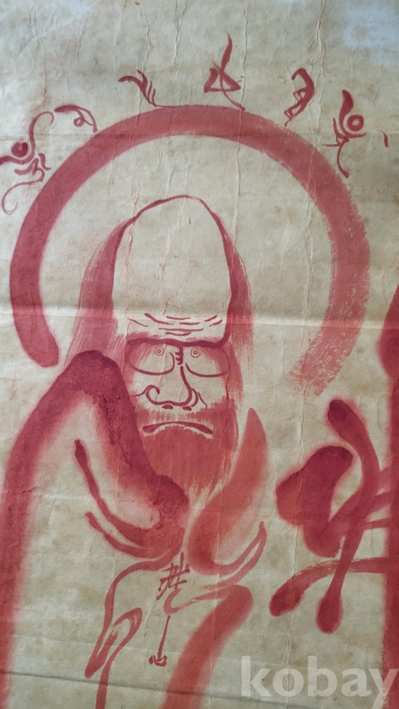 달마의 두상 위에는 "옴마니반메흠" 문자가 보임니다,
