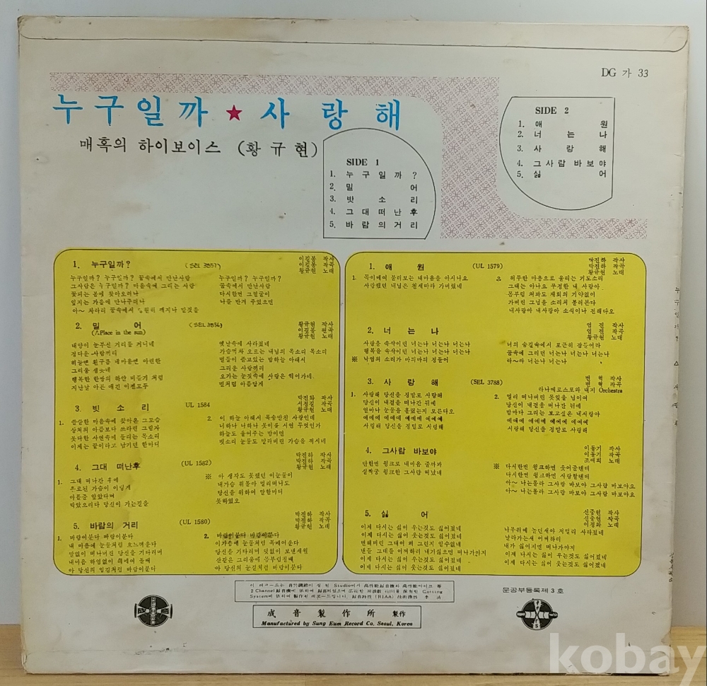 황규현 (누구일까 / 사랑해) 1971년 성음 초반