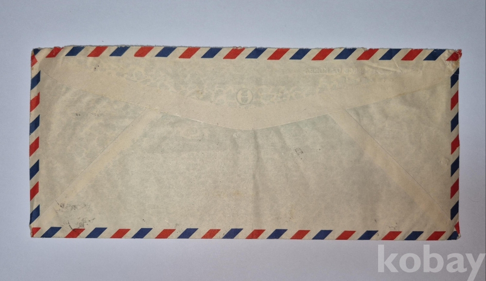 1966년 발행된 '제2차 국산백지 청자조각 어룡수병 보통우표'가 다량으로 첩부되어 해외로 채송된 항공우편입니다.