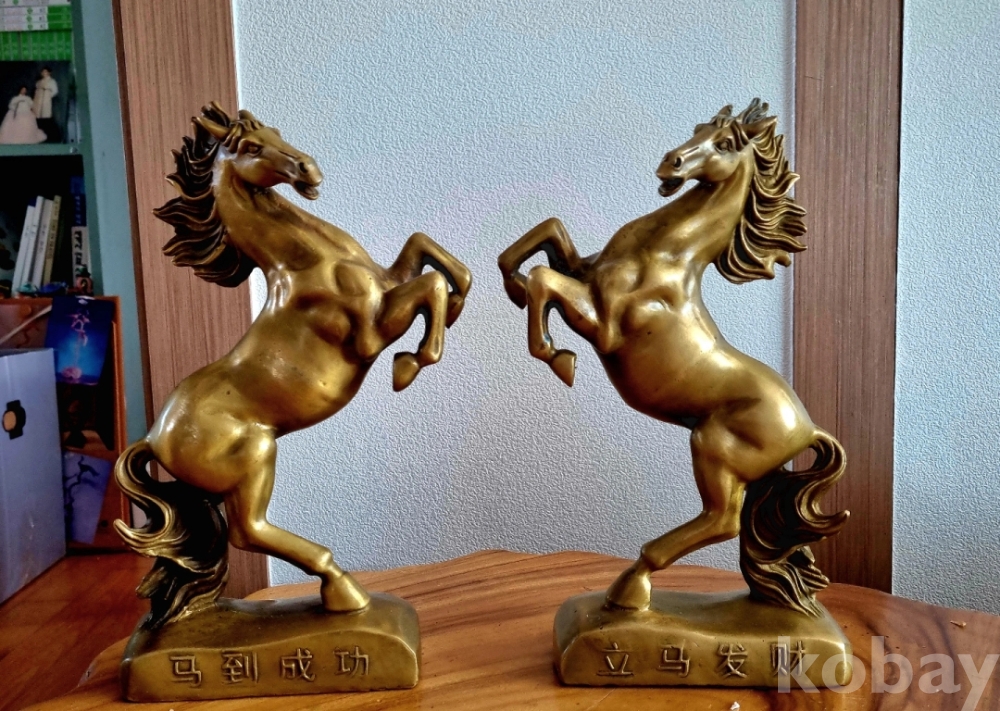 성공을 향한 역동적인 황동 말 브론즈 한쌍ㆍ