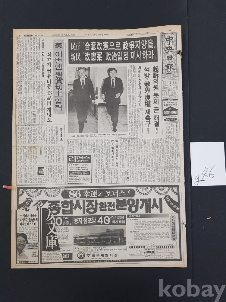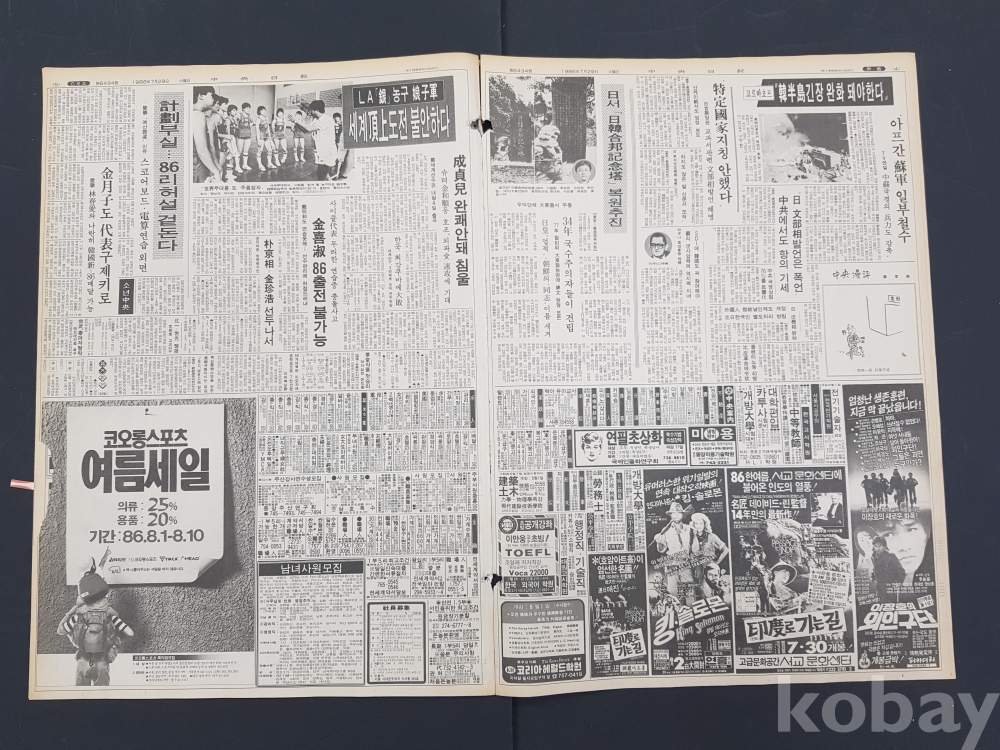 **** 1986.07.29(중앙일보)/대우자동차 르망 광고포함/약 12면