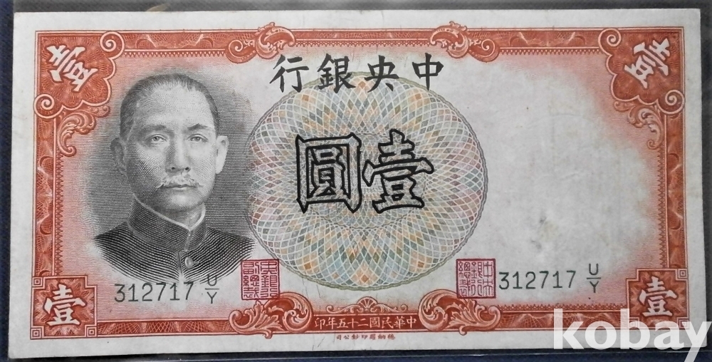 중국 중앙은행 1원 민국25년