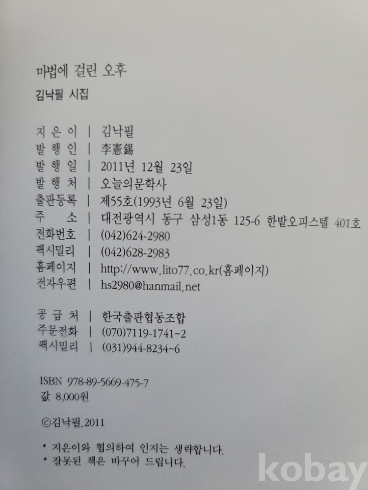 2011년 발간한 첫 시집 『마법에 걸린 오후』