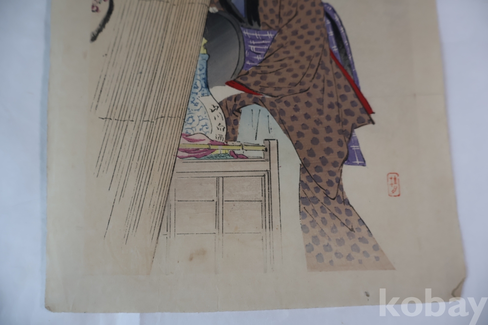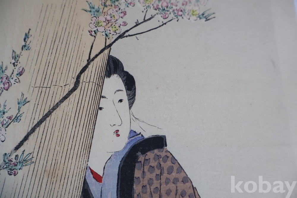 구치에 원본 목판화/명치기의 원본 목판화 구치에 임니다 화가의 낙관을 가진 우아한 명화 임니다 woodblock print by Kajita Hanko (1870-1917)
