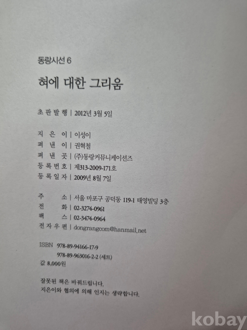 2012년 발간한 제3시집 『혀에 대한 그리움』