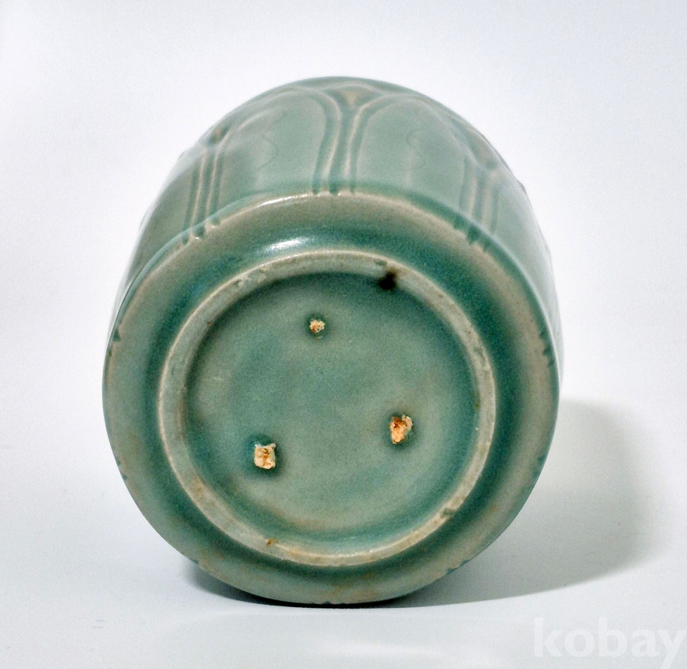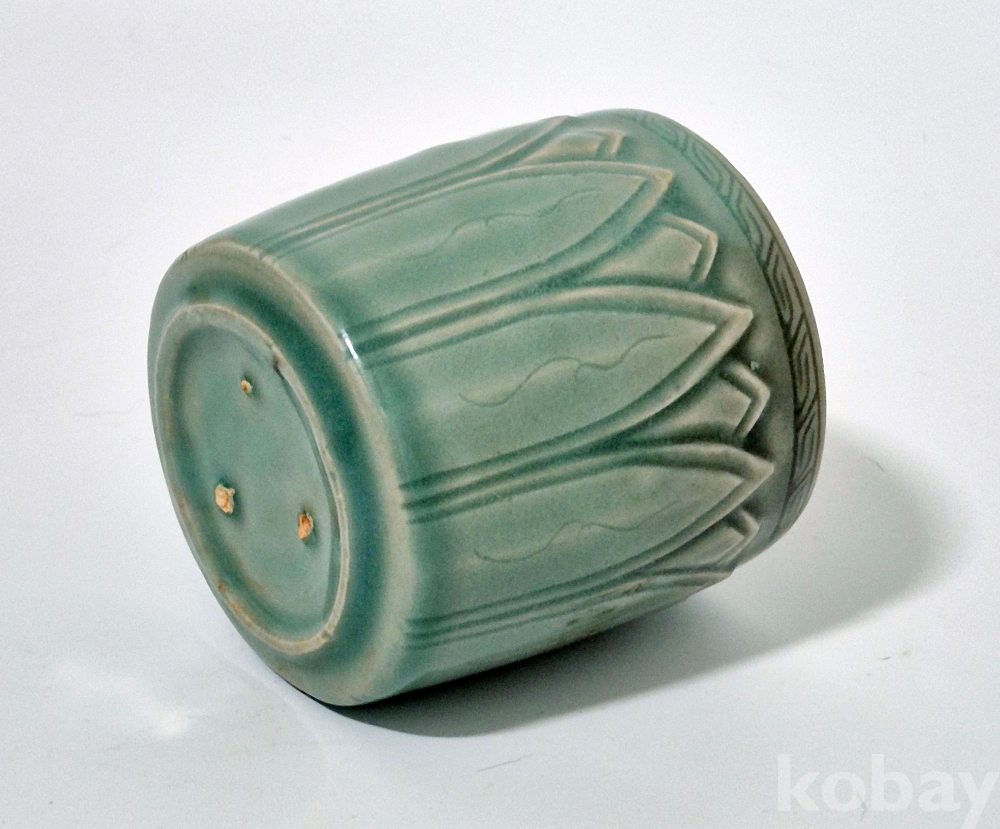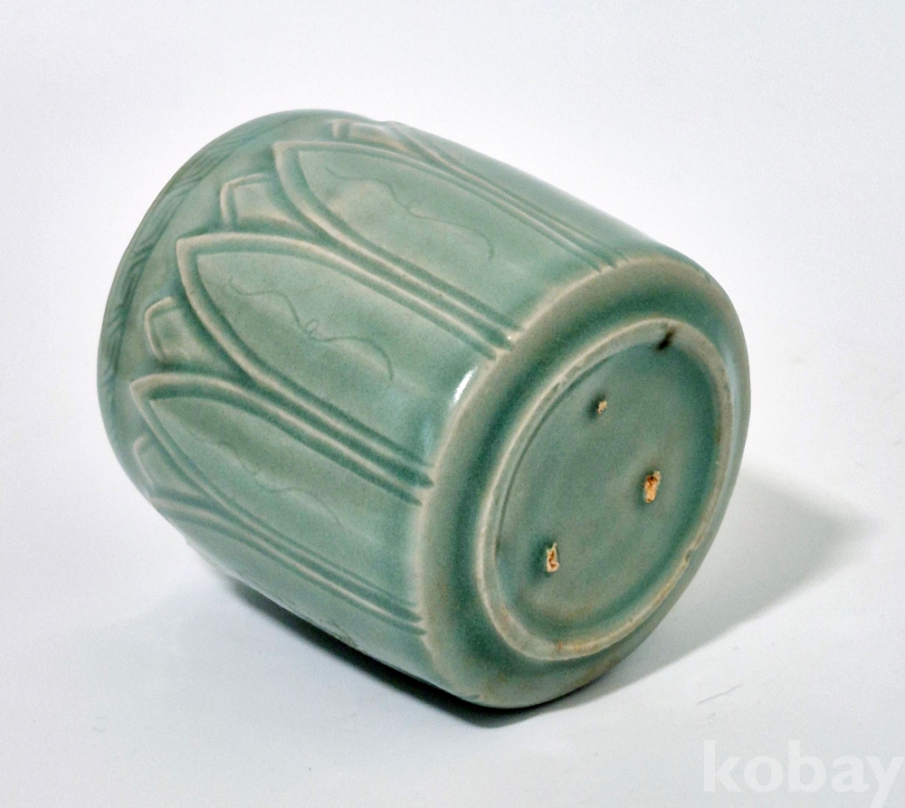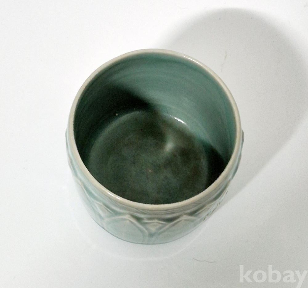 크기와 모양이 현대적이지만, 규석 3개를 받쳐 구워낸 고려 청자로 유색과