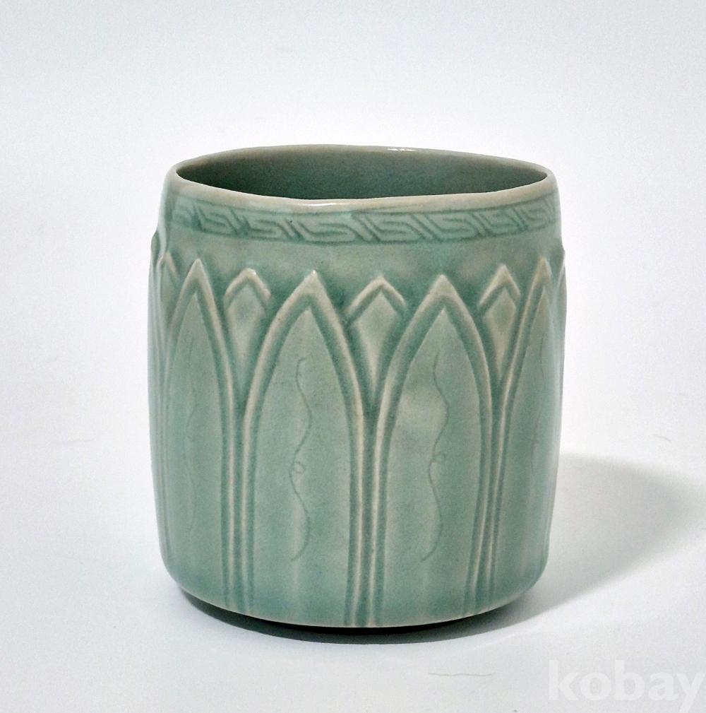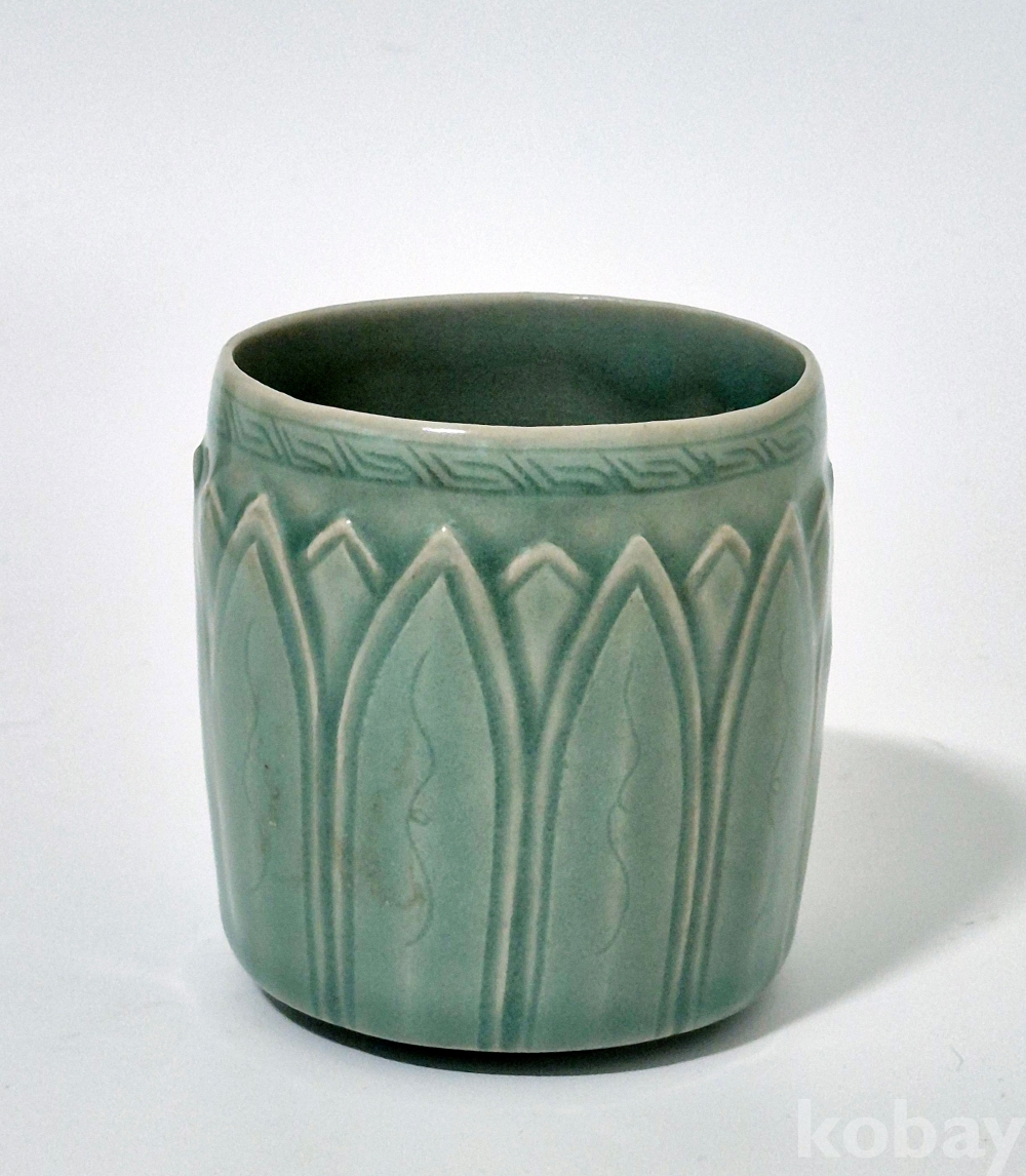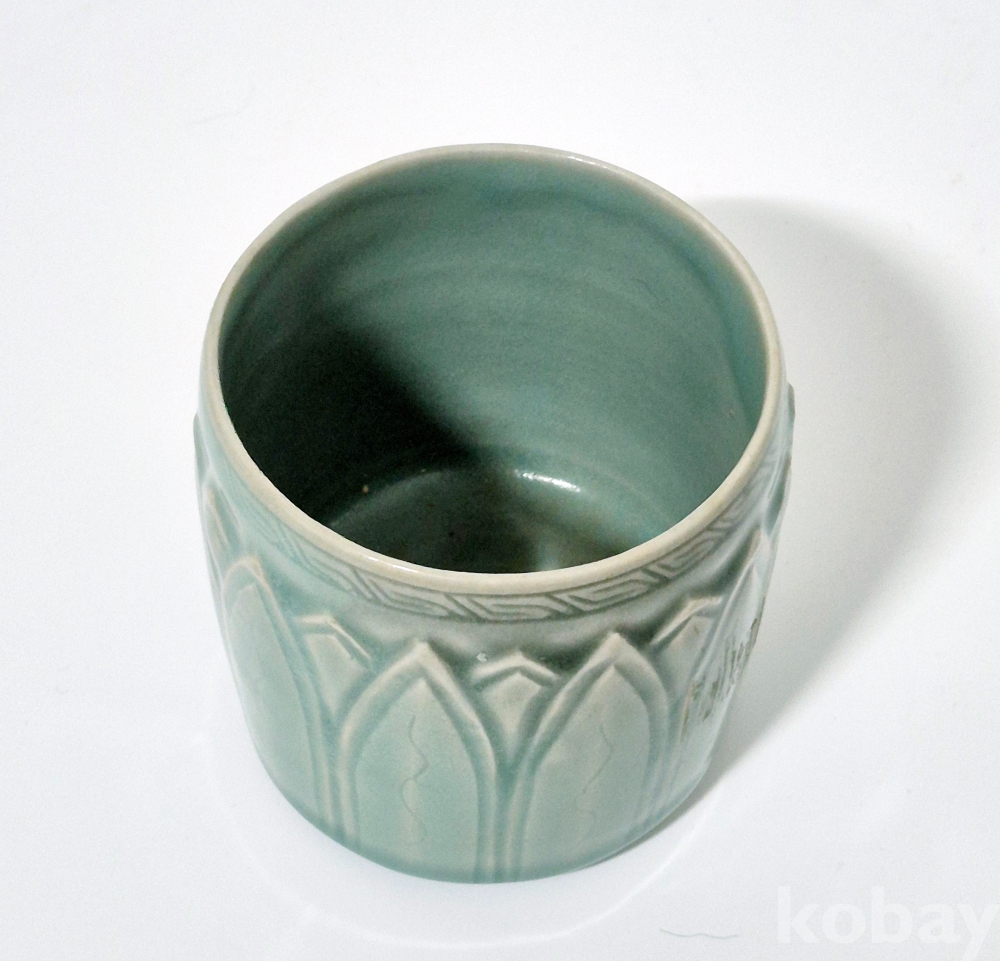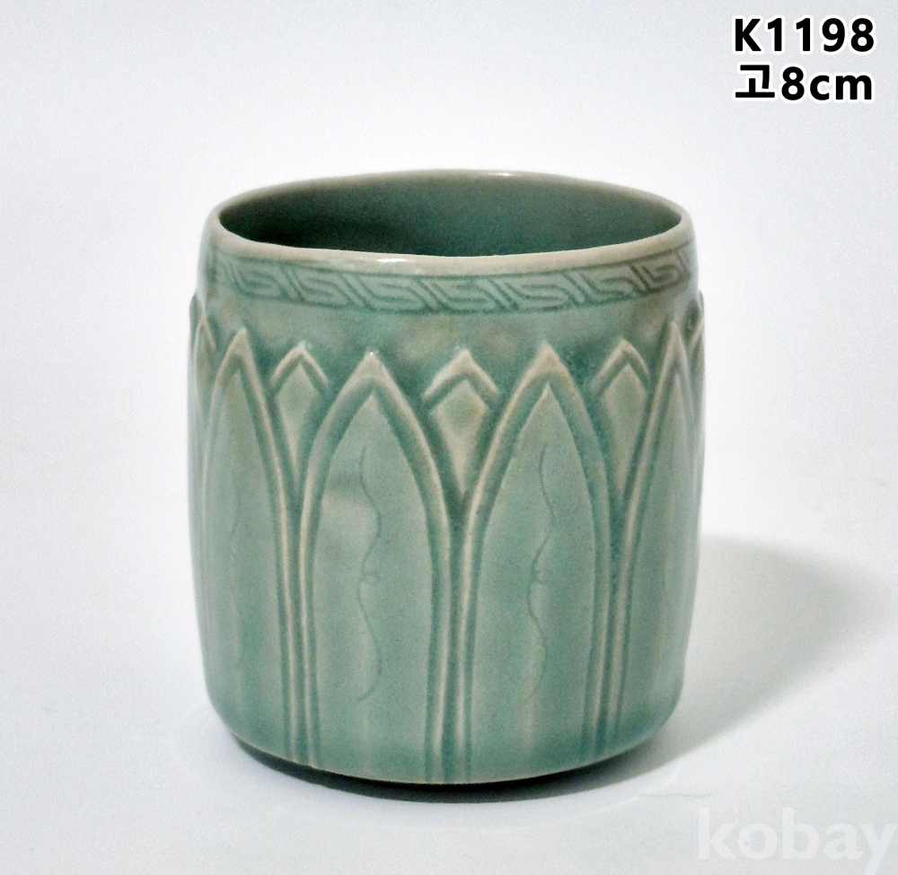 크기와 모양이 현대적이지만, 규석 3개를 받쳐 구워낸 고려 청자로 유색과