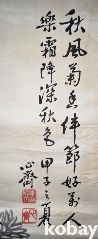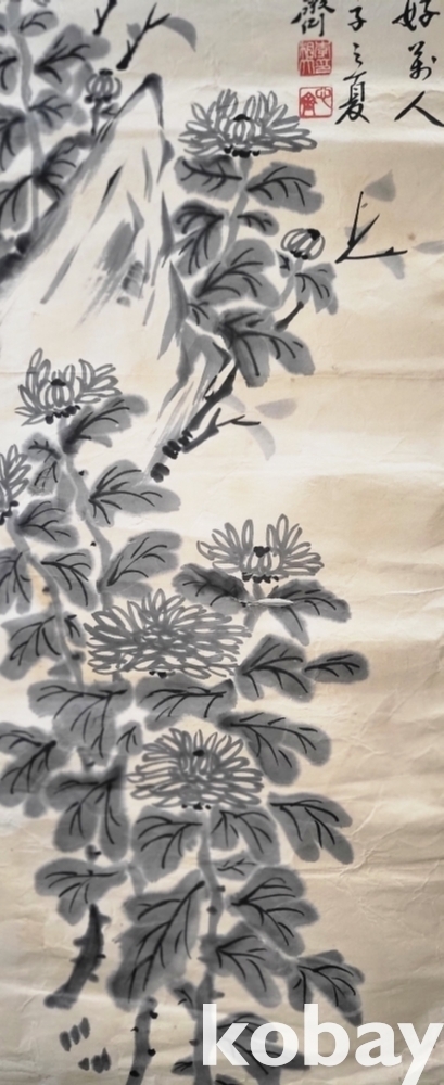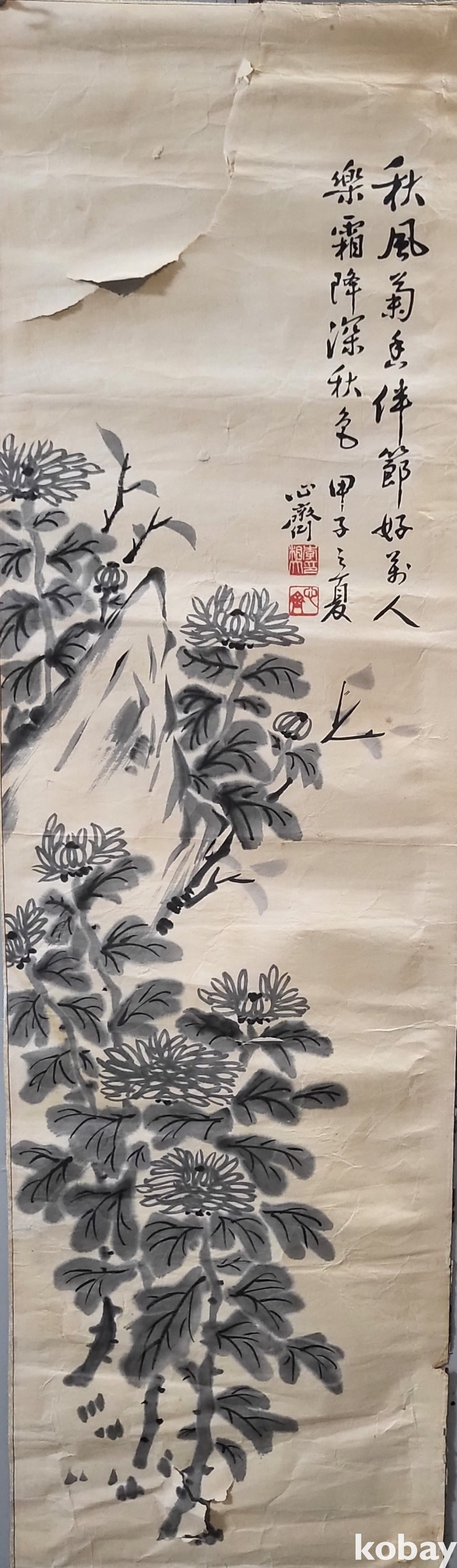 심제(心齊) 이상대(李相大, 1925~) 선생 수묵화(水墨畵)괴석에 국화그림입니다,소장자 가정에서 고서화와 함께 나온 그림입니다,