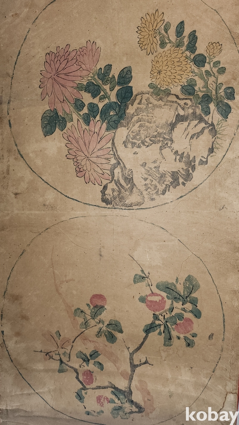 구한말 연대 종이에 당채로 채색된 민화로 명화입니다,