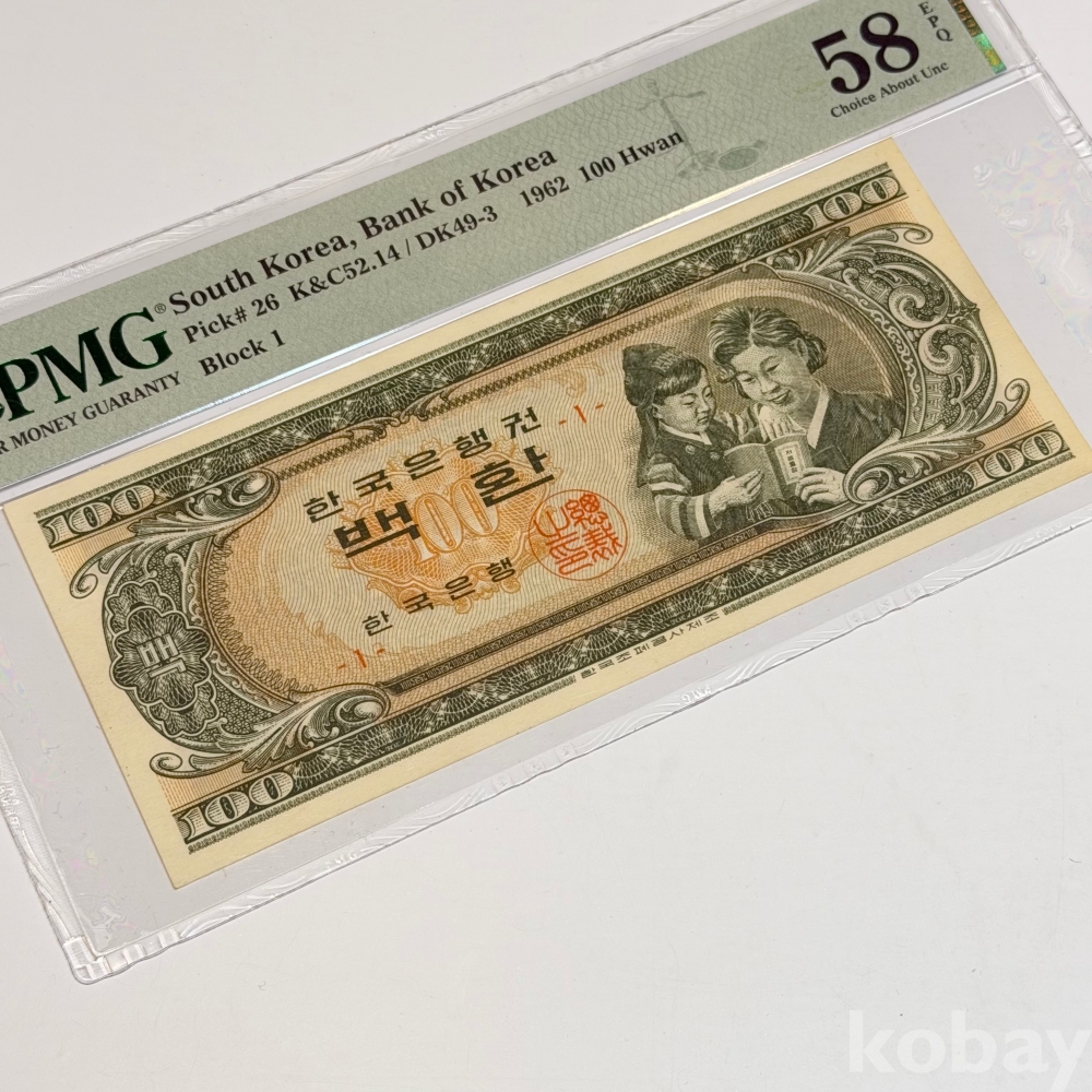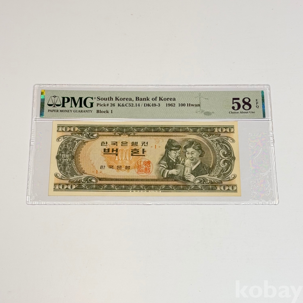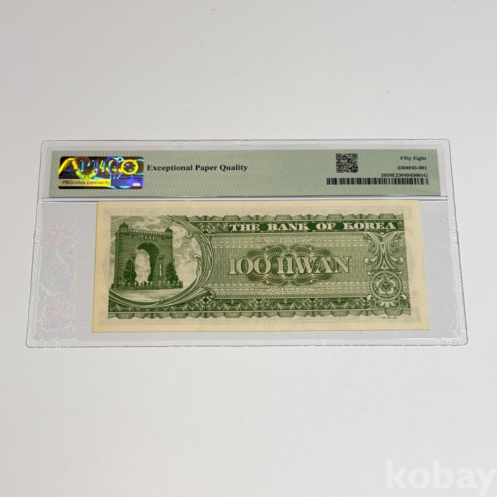 ☆★한국은행 개갑 100환(모자상)★☆ 판번호1/ PMG 58등급