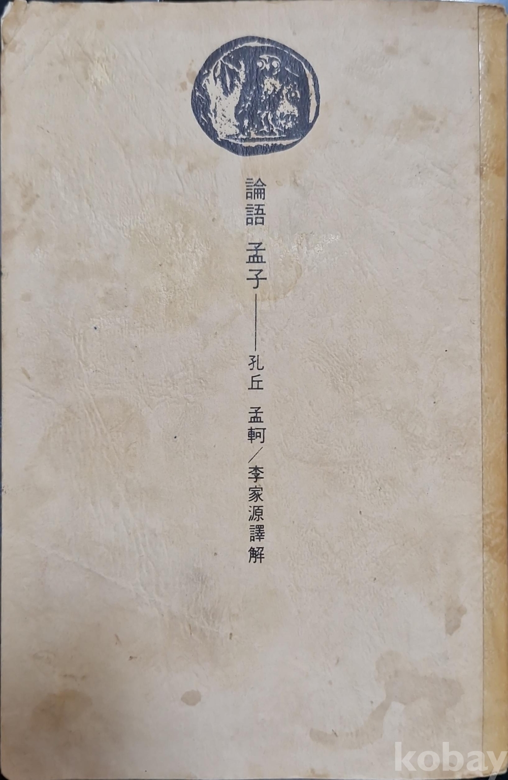 [논어 맹자] 공구 맹가, 이가원 역해, 발행처 동서문화사, 1978년 6월 10일 발행, 503쪽, 상태 세월감, 변색, 얼룩이 있고 겉표지 테이핑 되어 있음