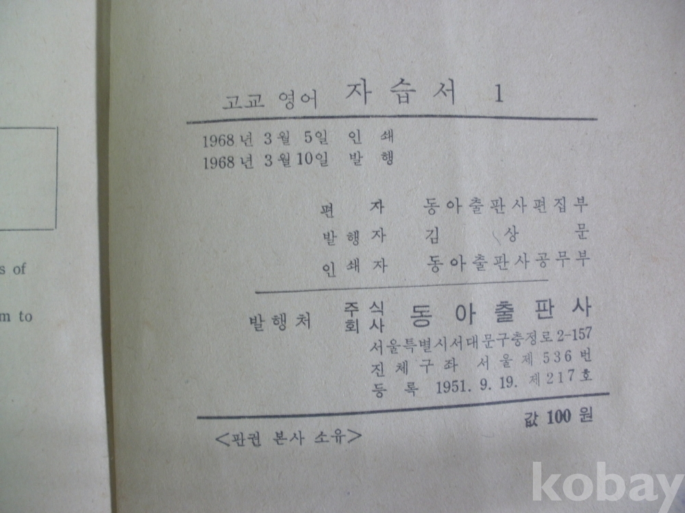 (실업계) 교교 영어 - 자습서 1 (1968년, 동아출판사)