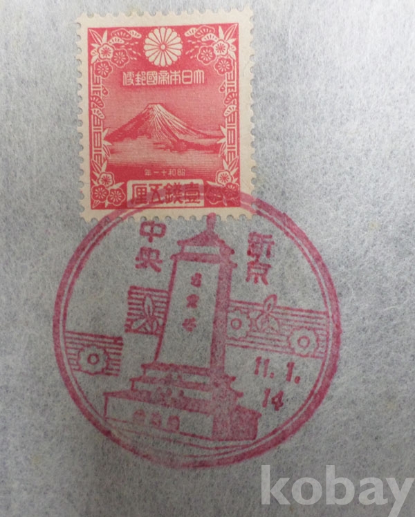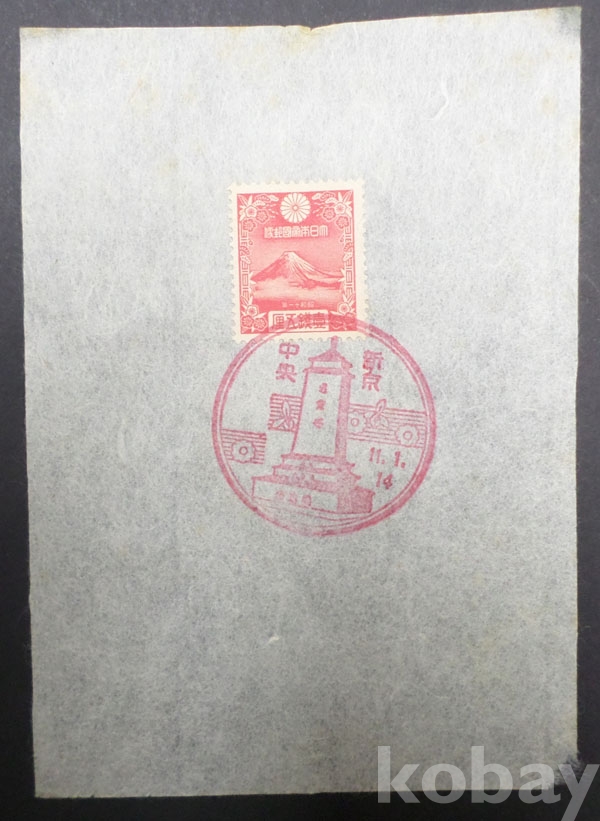 [일제강점기 만주 관광인] 신경중앙/ 엽서정도 크기 대지에 우표를 첩부하고 날인