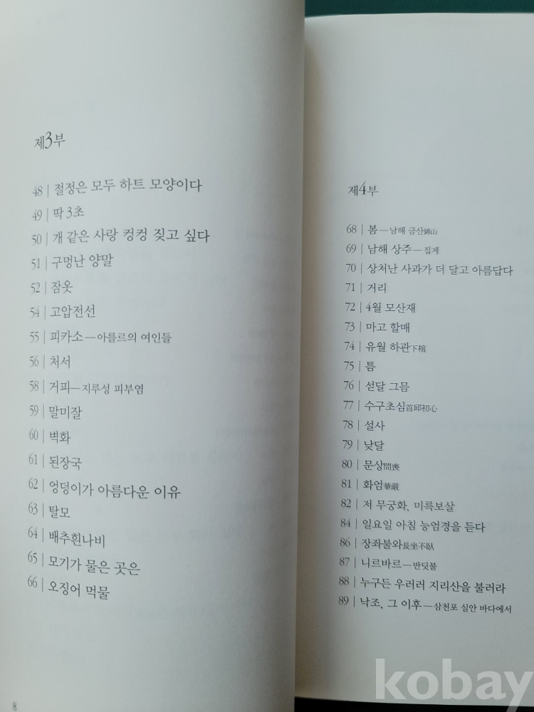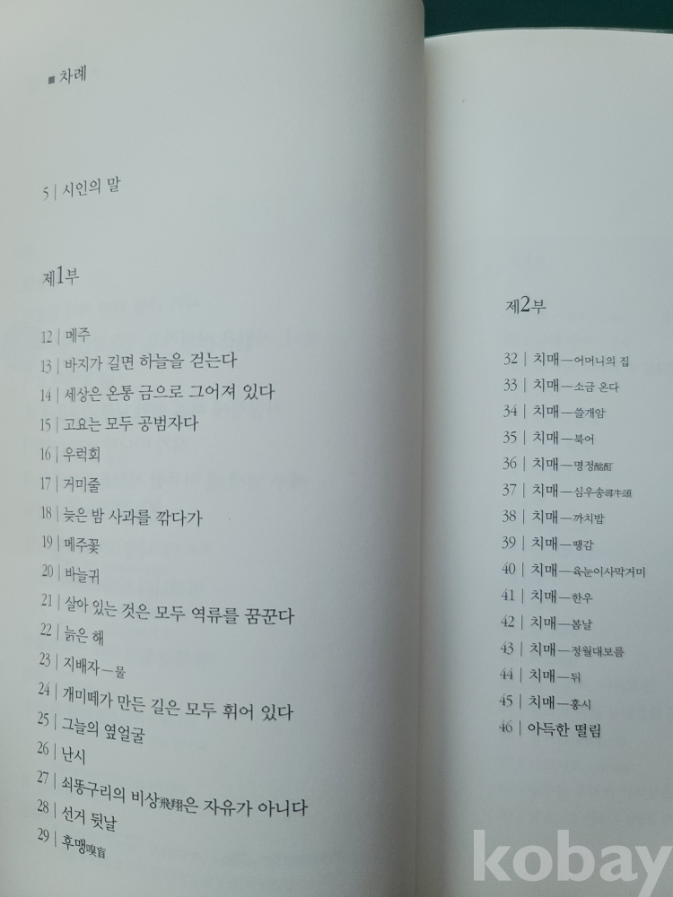 '시인의 말'과 5부 86편의 작품으로 심플하게 구성.