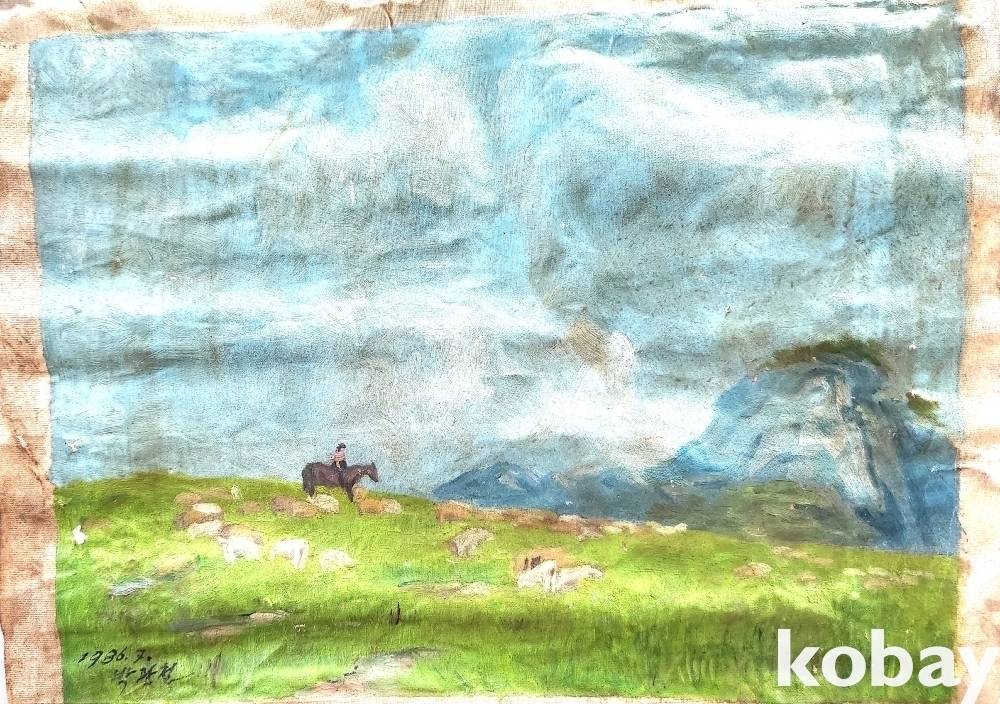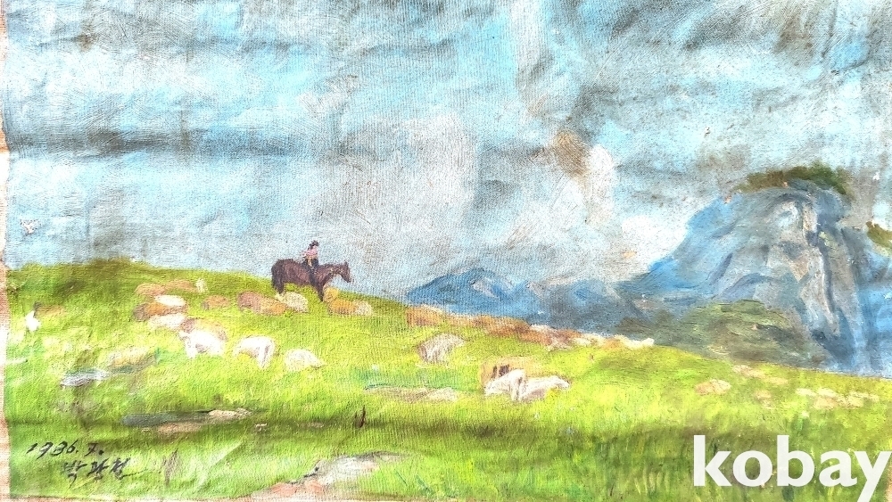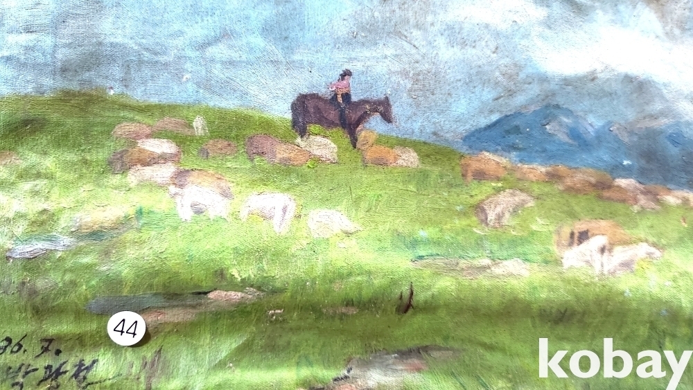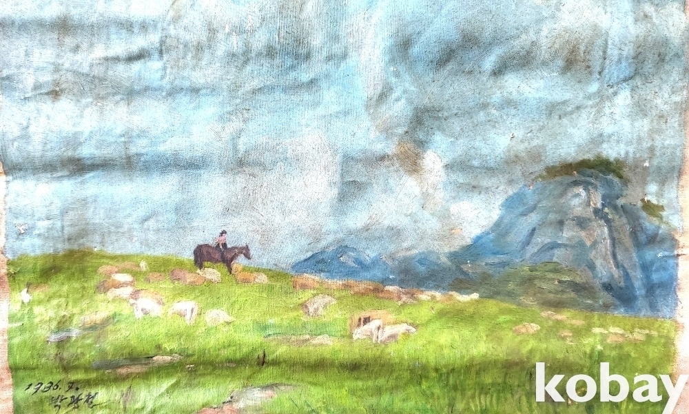 북한인민화가 박광철 1986년 作 켄버스 유화 풍경화입니다,