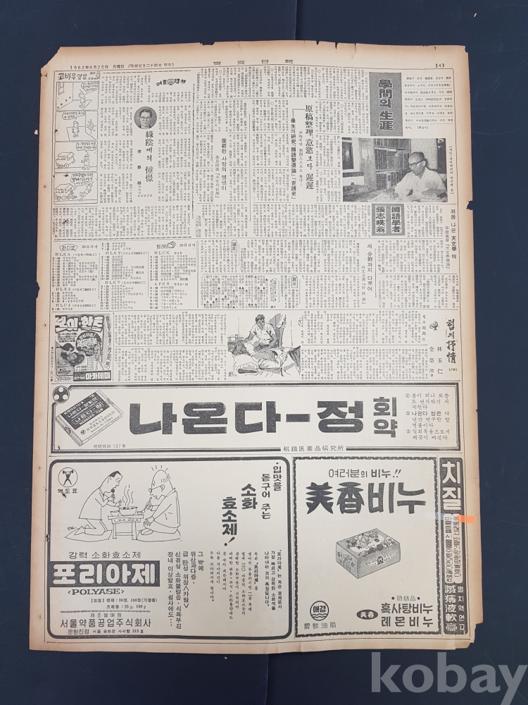 **** 1962.06.25(동아일보)/애경 흑사탕비누 등 광고포함/약 4면