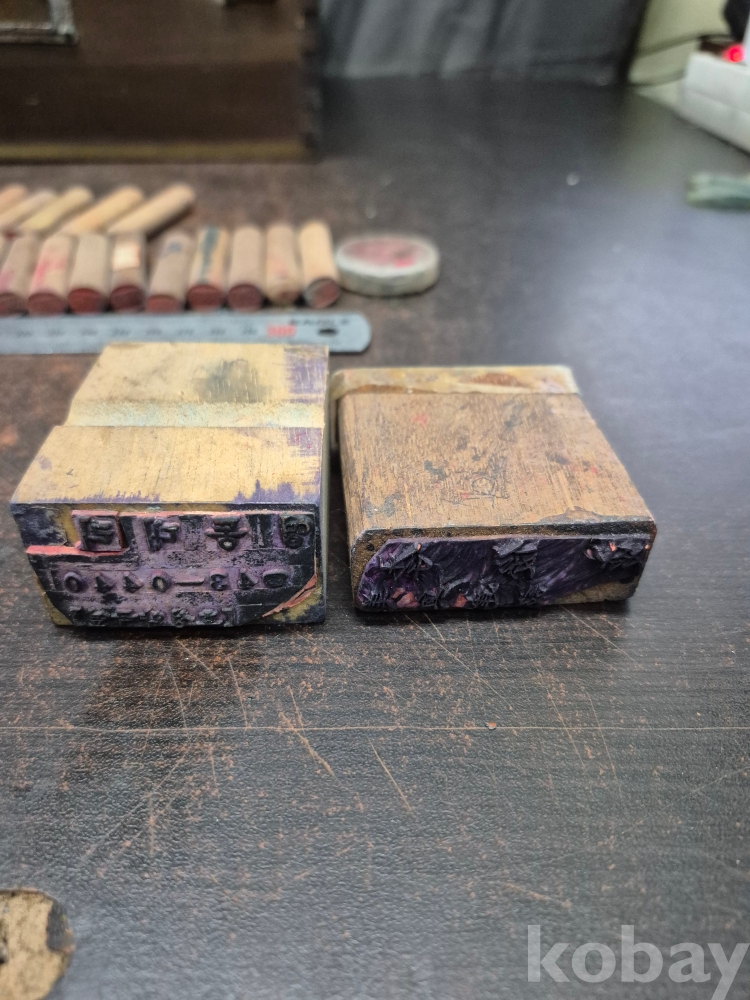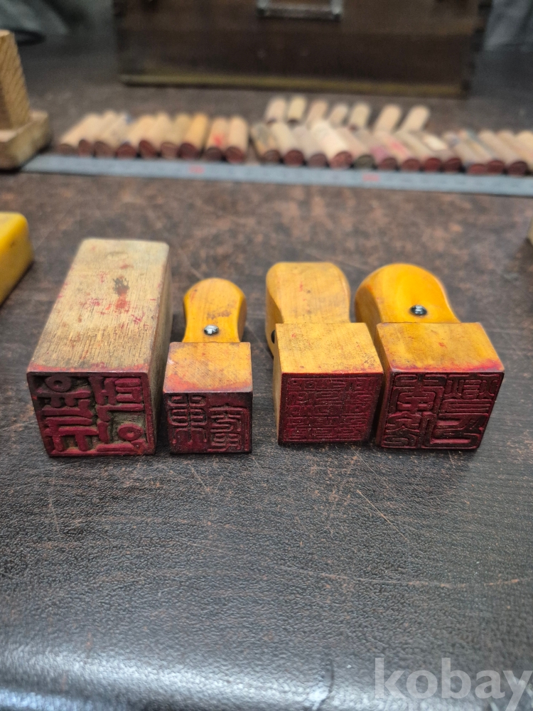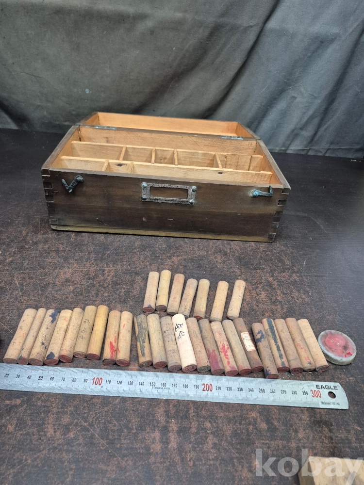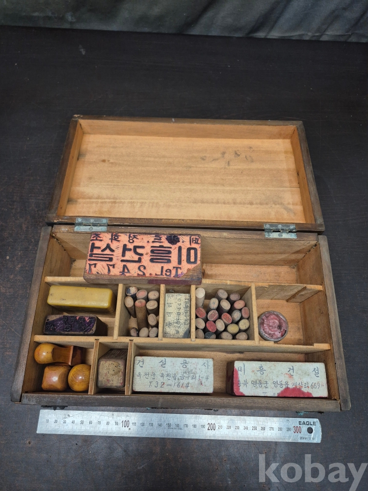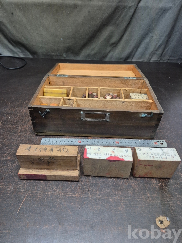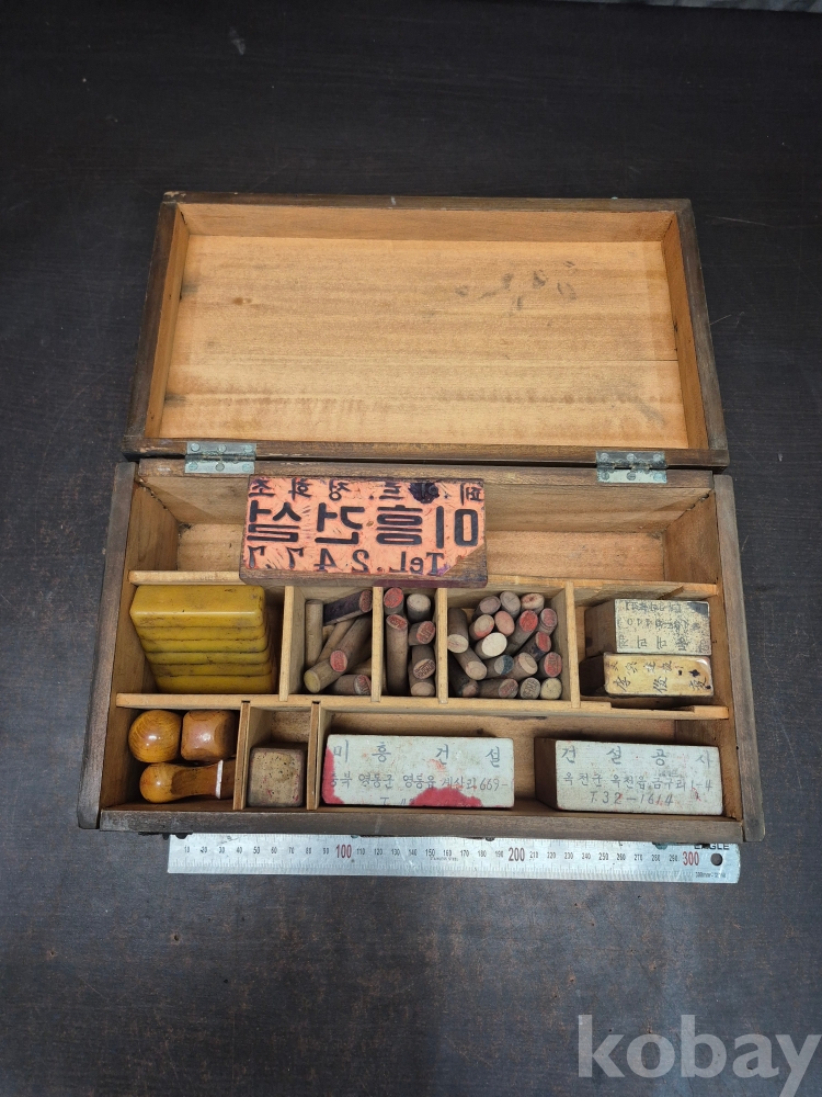 1960년대 원목 사괴물림 도장함과 도장 다수 목도장 30점 다수 일괄 32*19*13