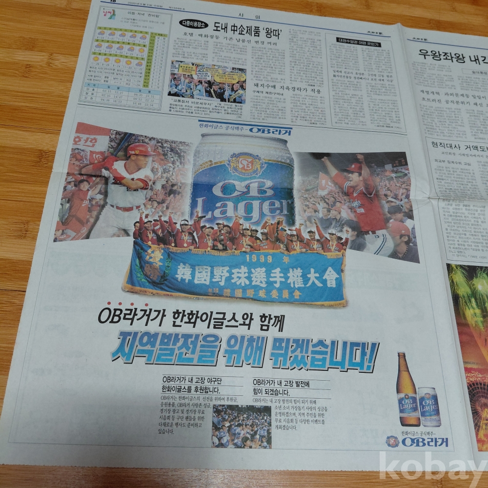 한화이글스 공식맥주 OB라거 광고 대전일보 200년5원3일 올려드립니다