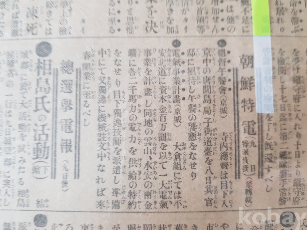 [EE79]*東京日日新聞/1912.5.10./朝鮮特電.총독오찬회,전기사업계획(경성)/8면