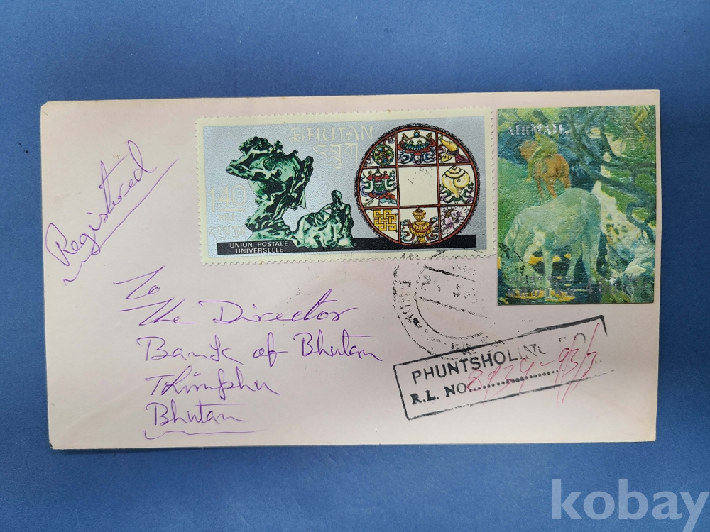 [흥미우표] 부탄,3D 엠보싱우표 첩부 등기실체