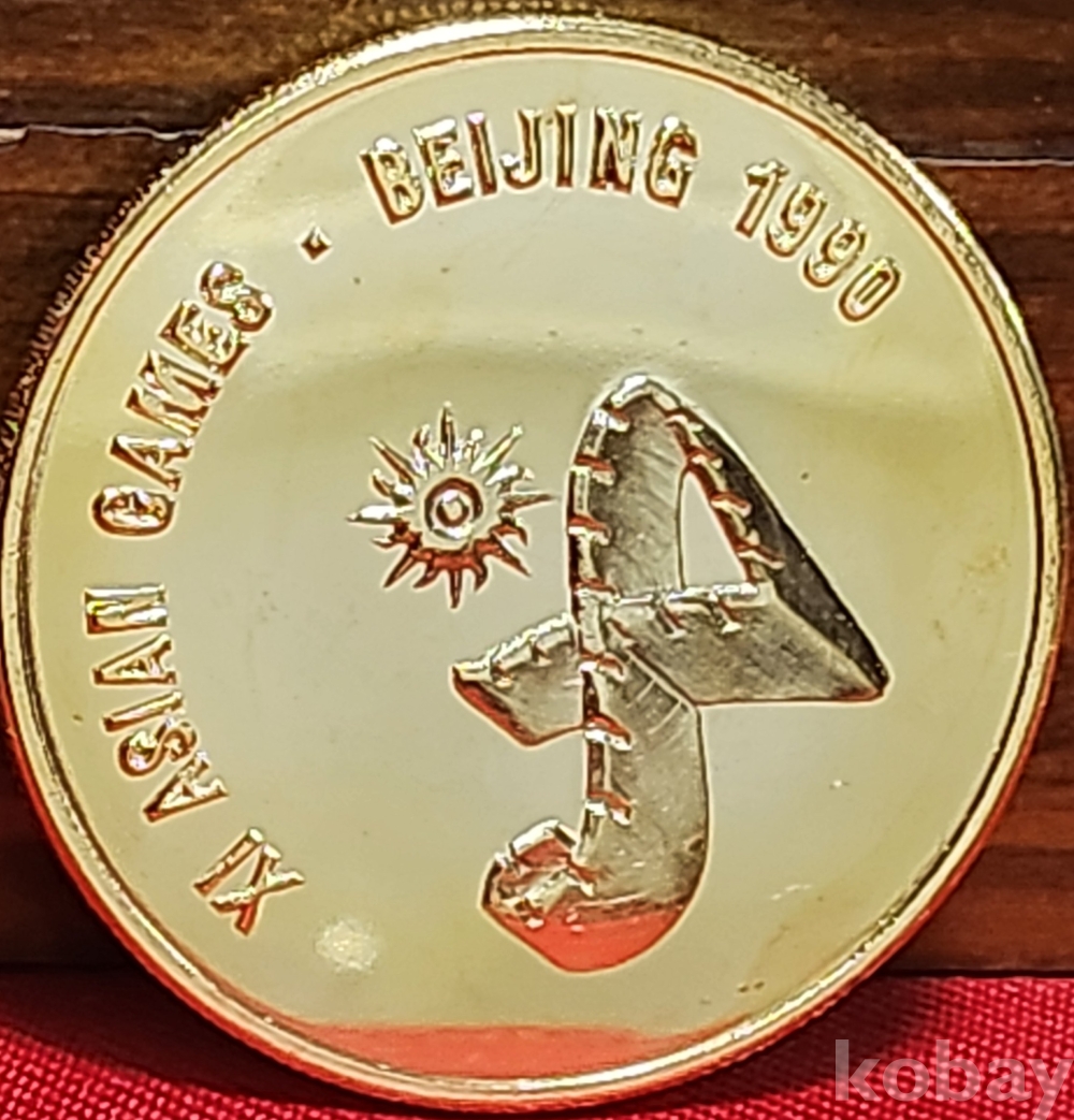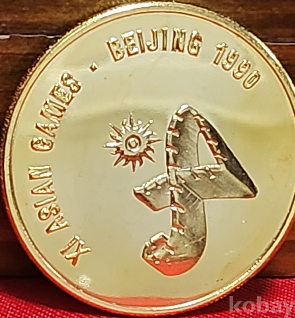 1990년 북경  아시안 게임 길상문양 황금색 기념품입니다,
