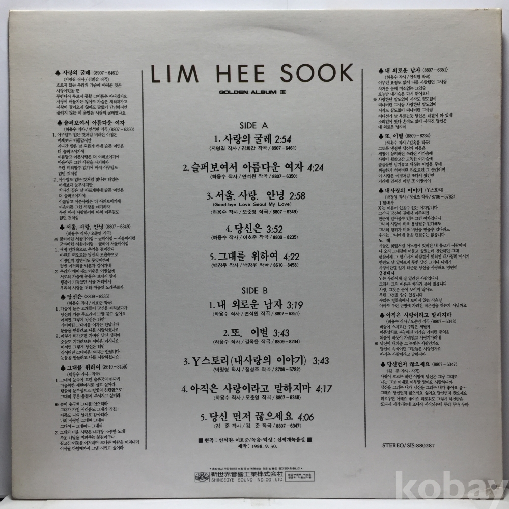LP 82,300-72 임희숙 3집 - 사랑의 굴레 자켓 EX+ 알판 EX+ 89 년 국내반