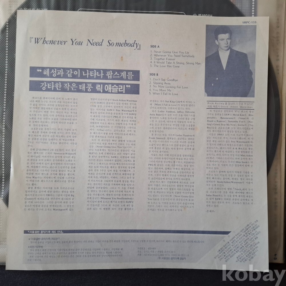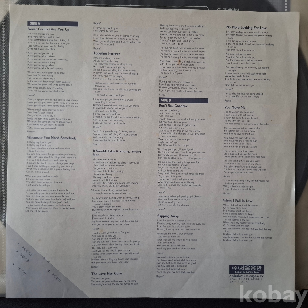 | 자켓상태 | NM : 개봉했으나 미사용, 자켓 손상 없음 | 음반상태 | NM : 개봉했으나 미사용급, 스크래치 없음 | 발매정보 | 알수없음 | 가사지여부 | 유 |