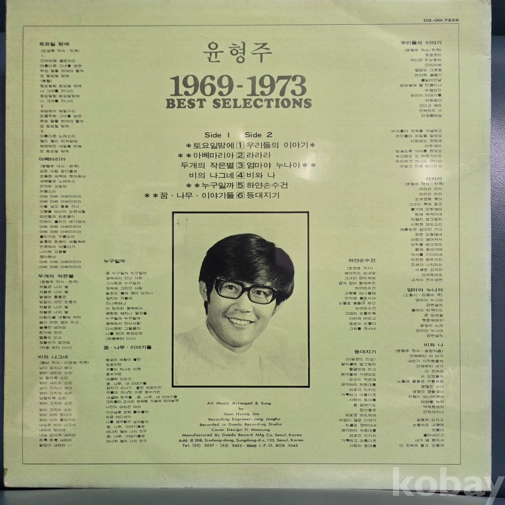 윤형주 1969-1973 베스트 (토요일밤에/우리들의 이야기/비의 나그네)