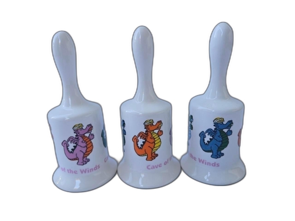 동물 케릭터 그림이 있는 도자기 손 종 입니다.