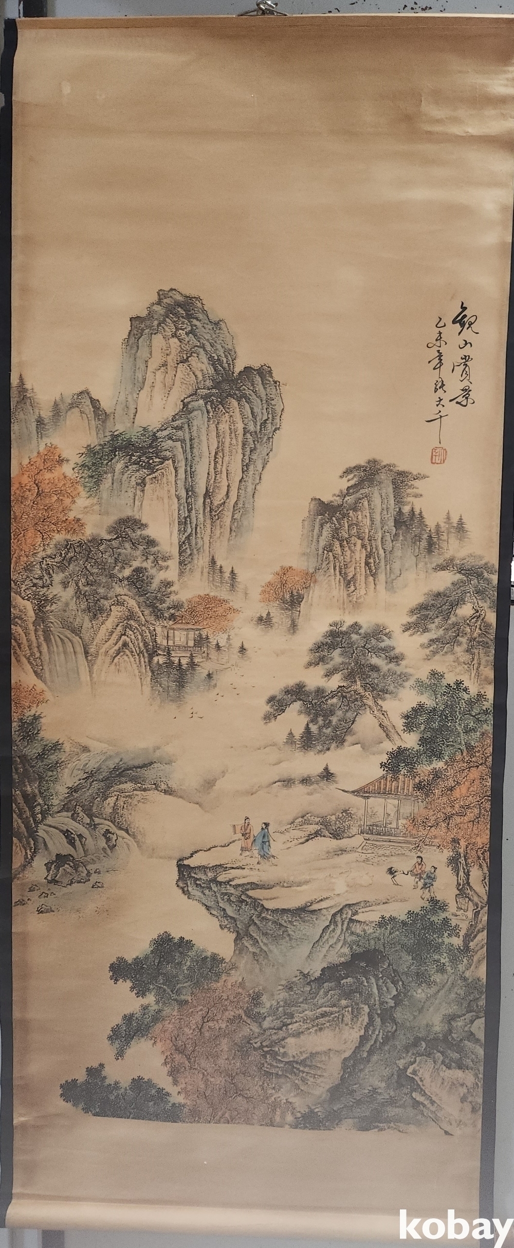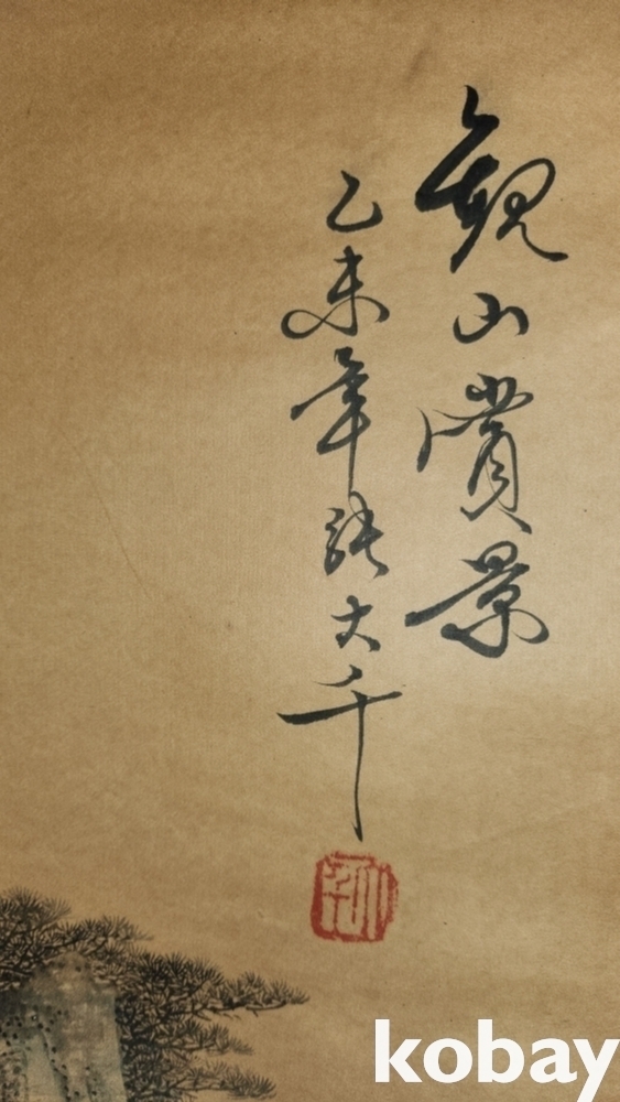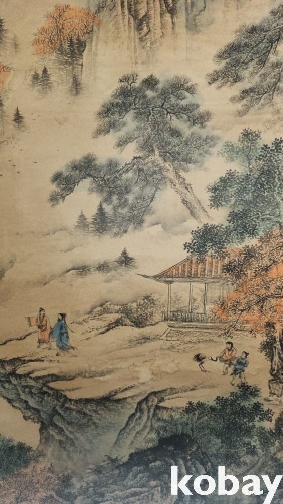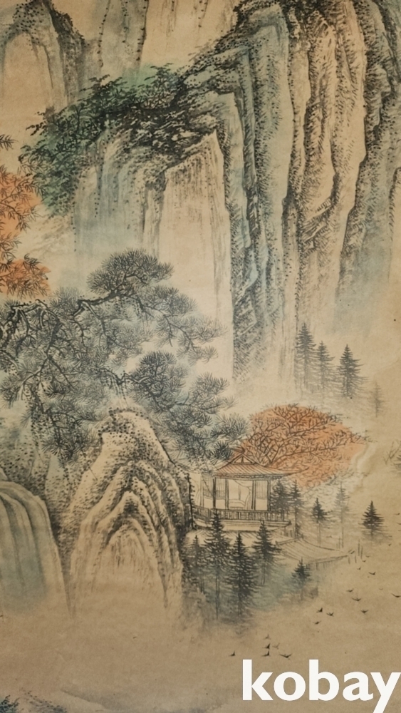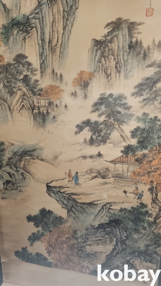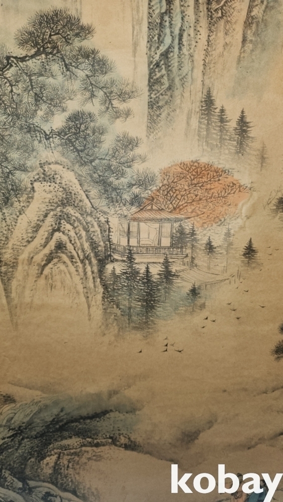 중국 유명화가 장대천 대형급 산수화 족자입니다,