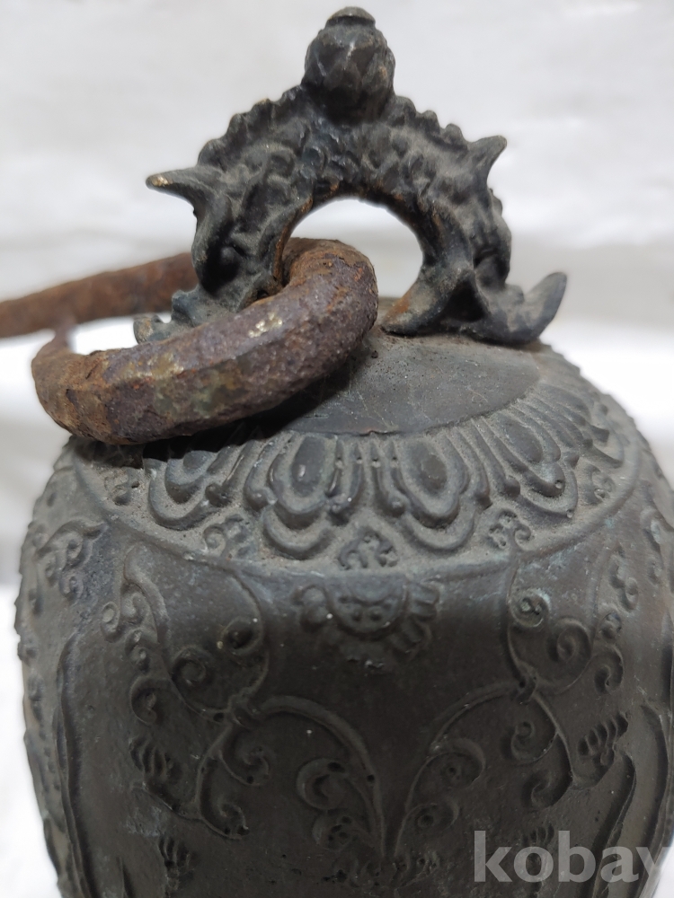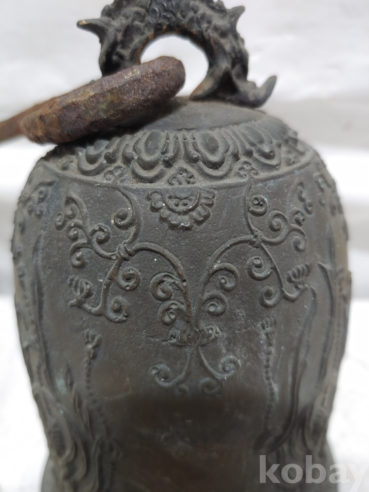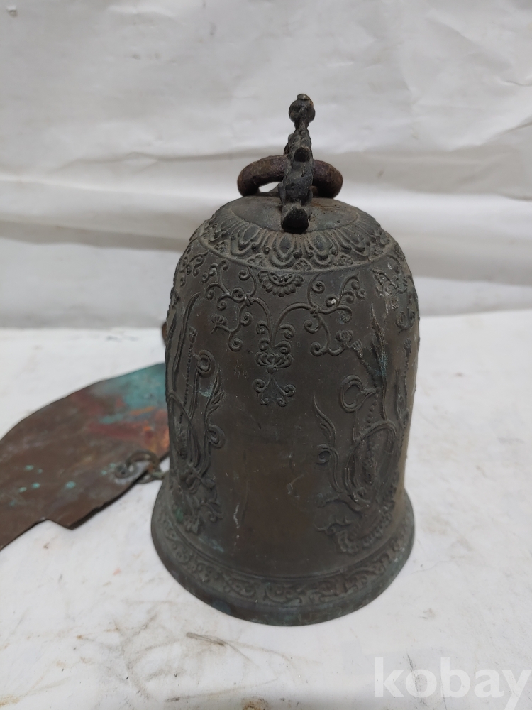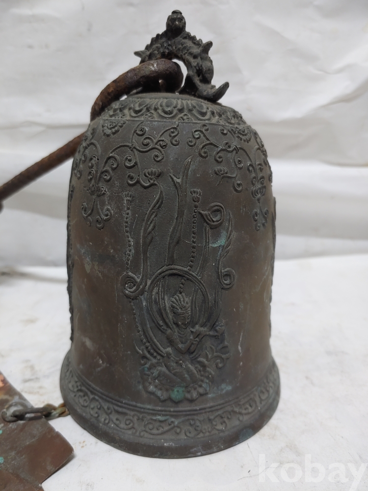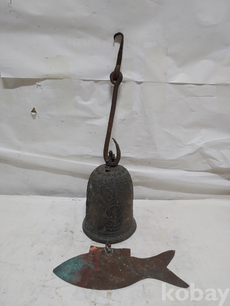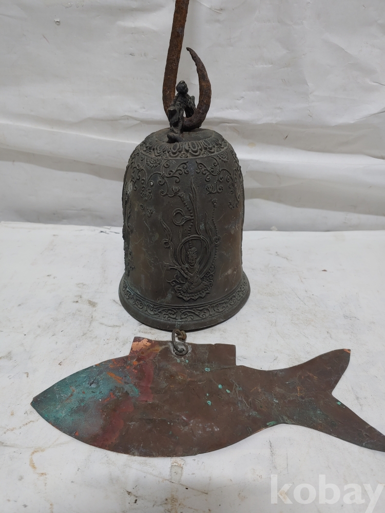 ""피리부는 부처님 문양에 두툼한 놋쇠 핑경""