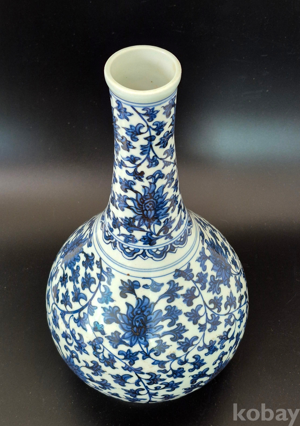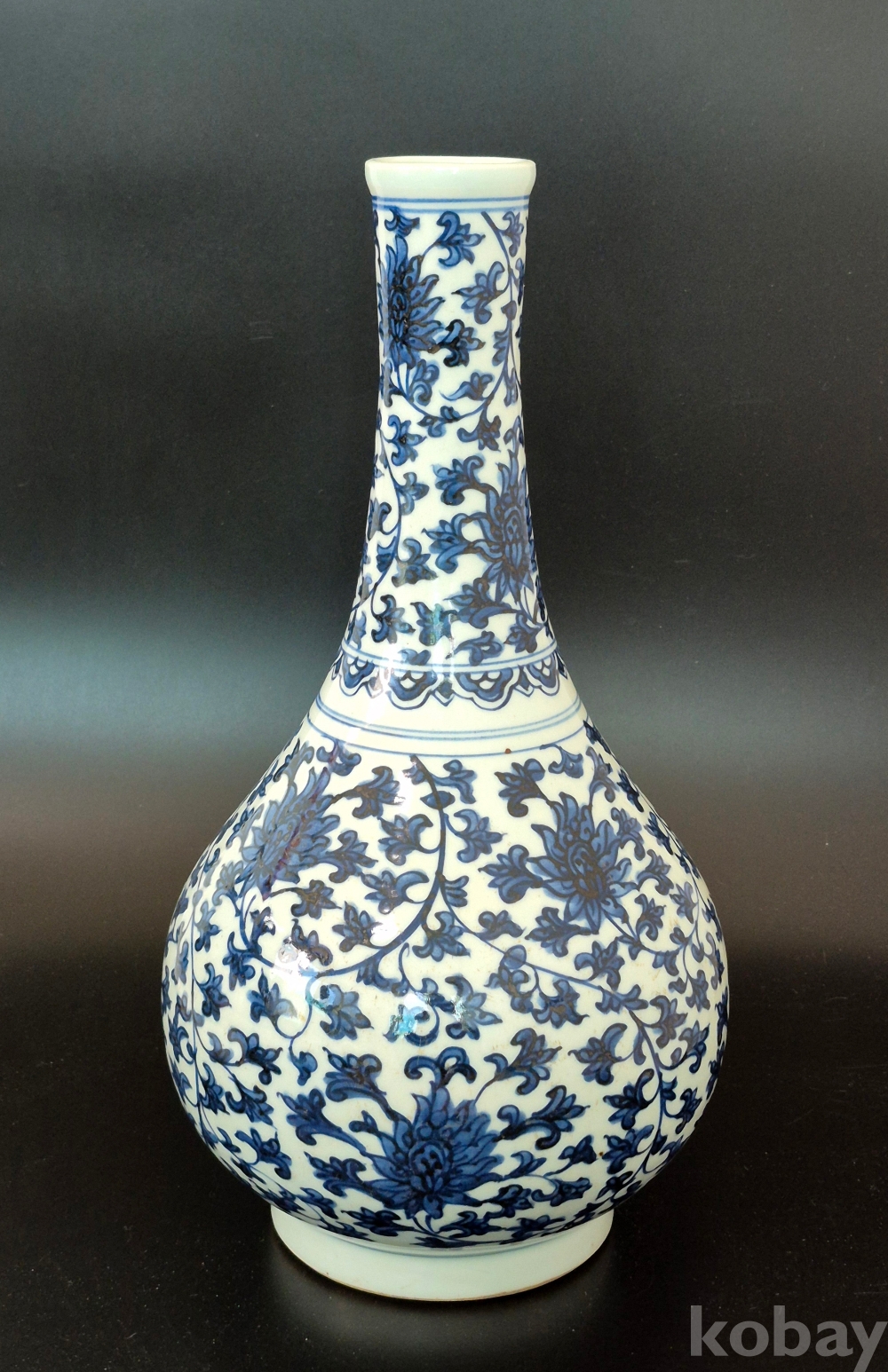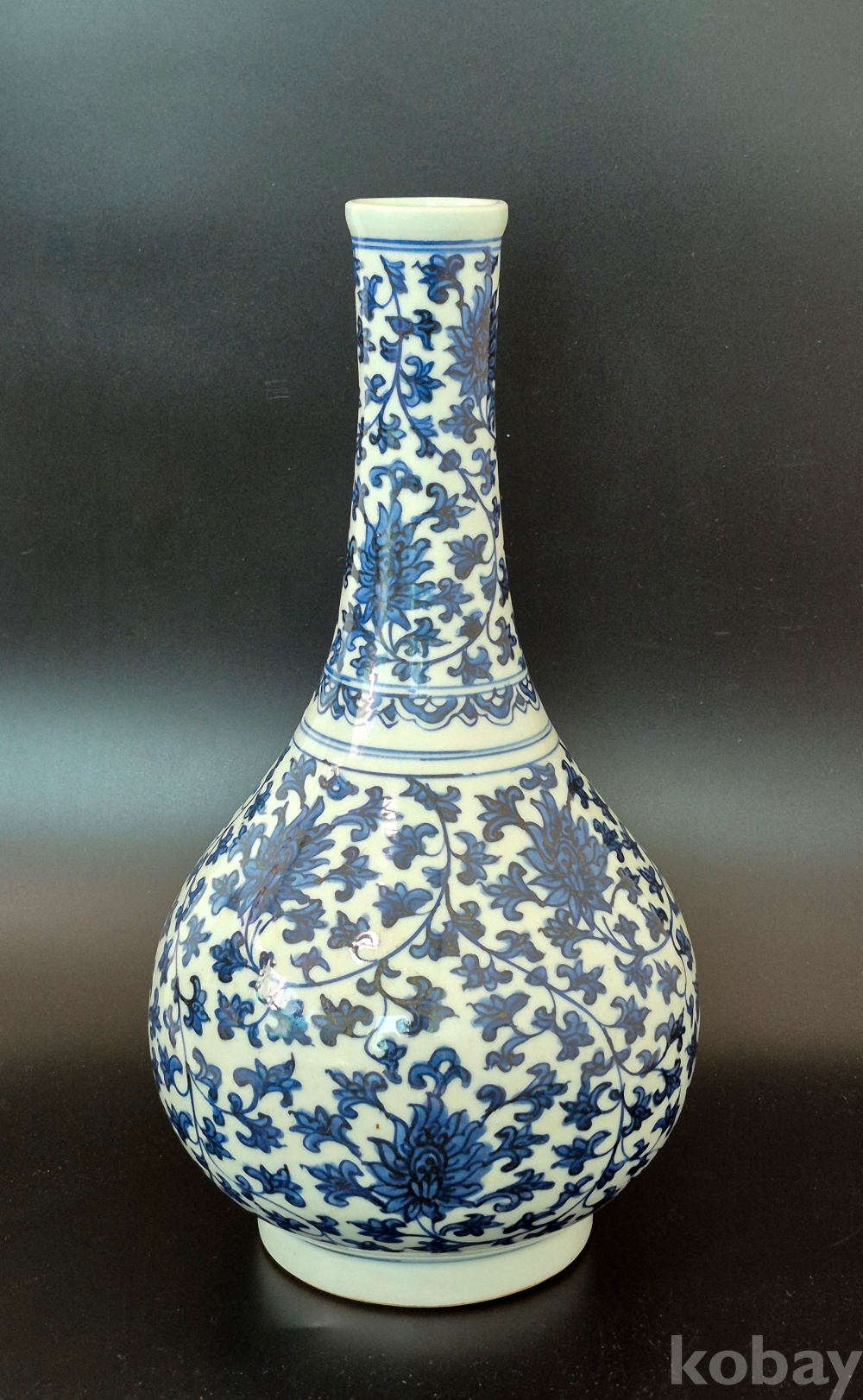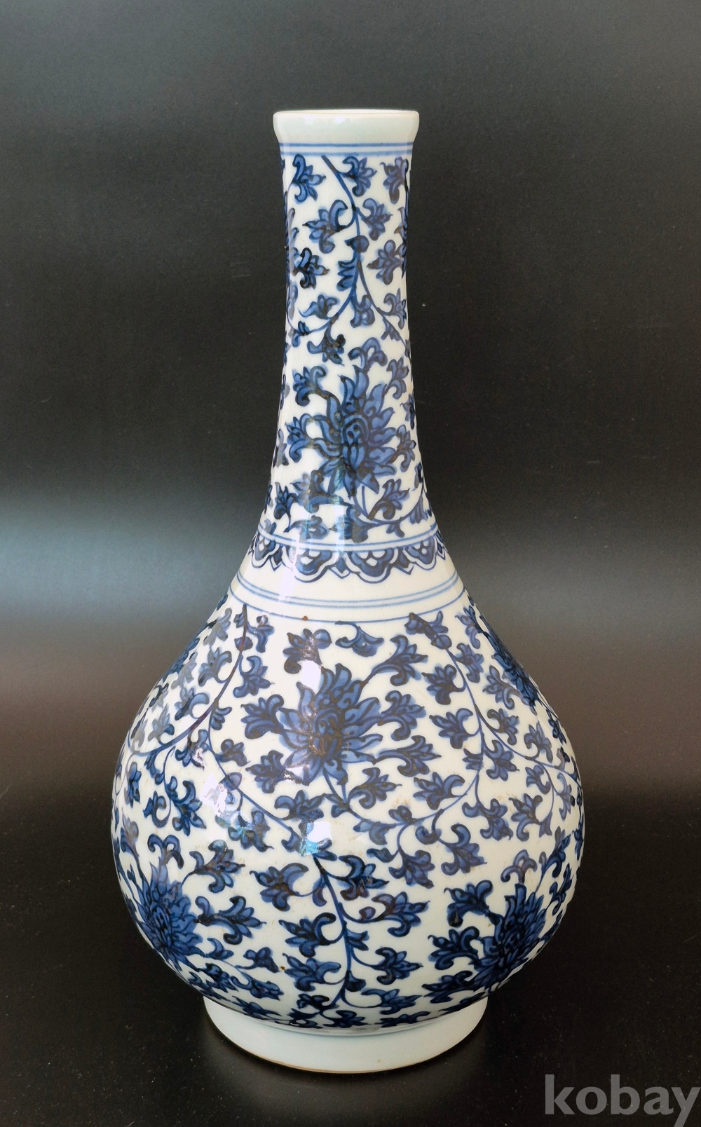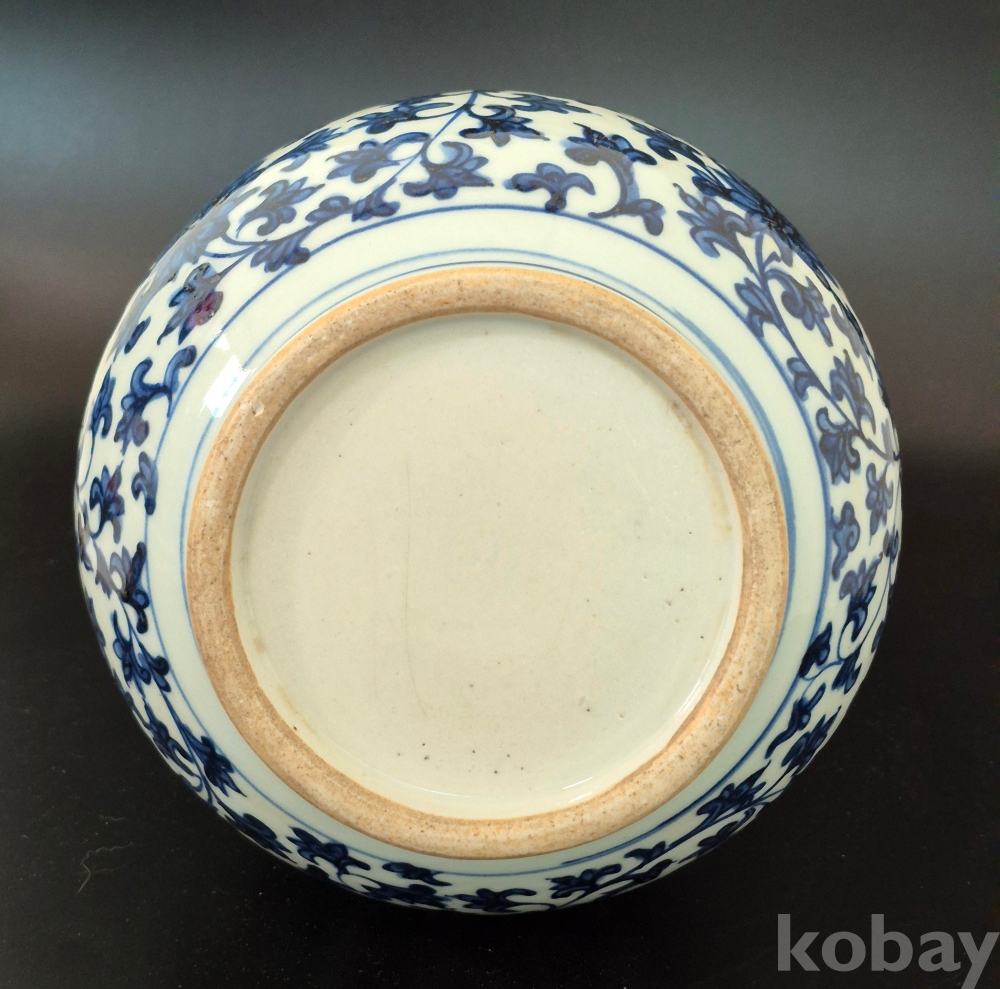 청화 발색이 뛰어나고, 전신에 꽉 차게 보상화문을