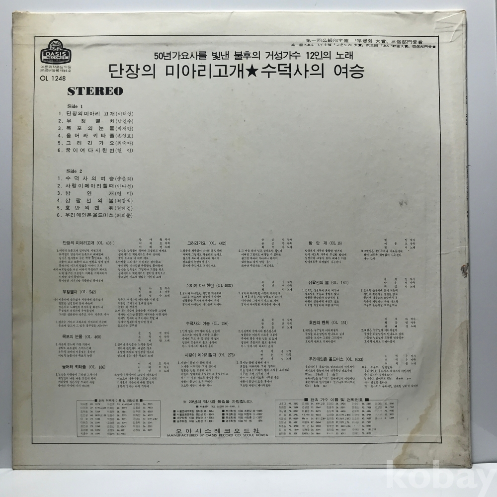 LP 160-240 단장의 미아리고개/ 수덕사의 여승 - 이해연 송춘희 남인수 박재란 손인호 현미 72 오아시스 자켓 EX 알판 EX