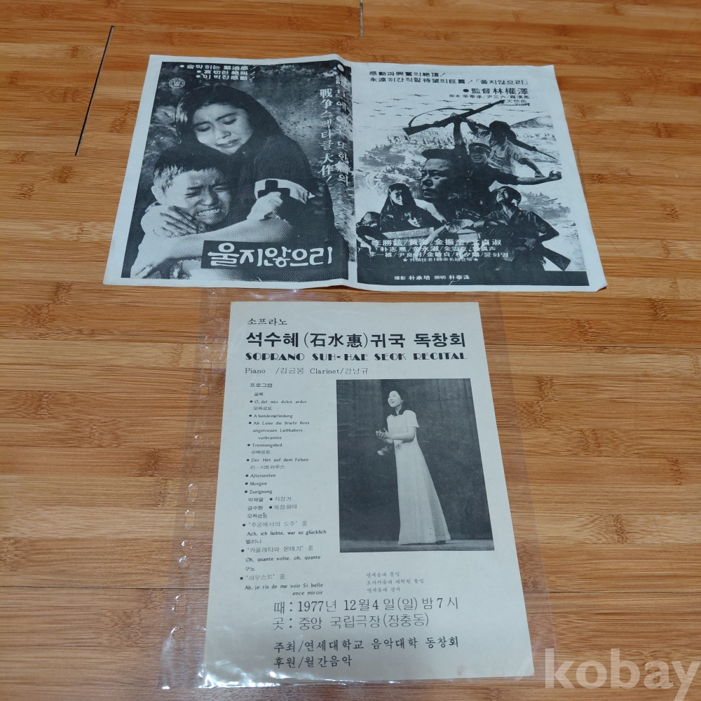 70년대 영화 포스터 ㆍ석수혜 귀국독창회 팜플렛 두점일괄 올려드립니다