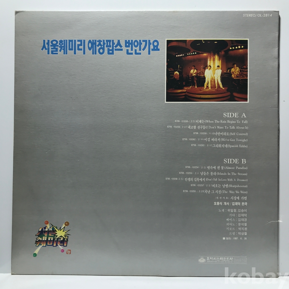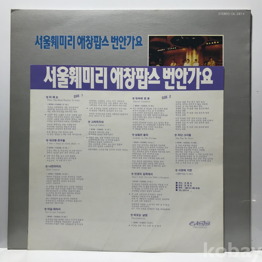 LP 30,900-174 서울훼밀리 애창팝스 번안가요 - 이제는 . 87 오아시스 자켓 EX+ 알판 EX