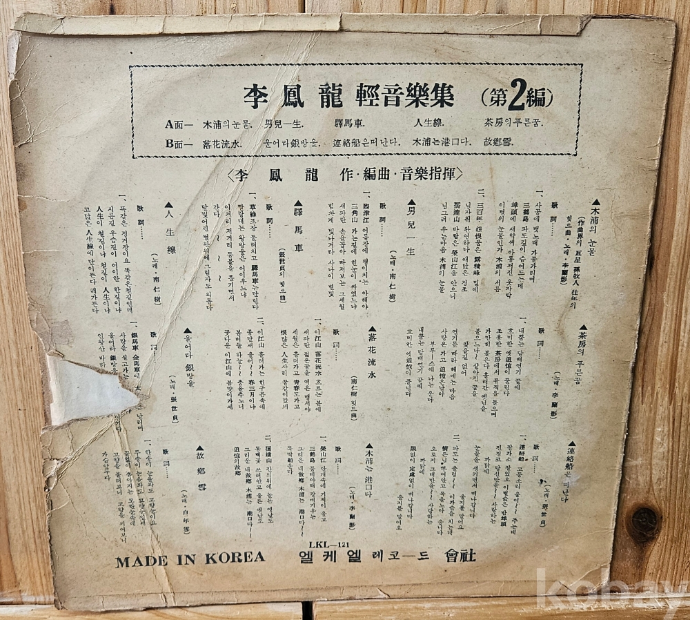 고 이봉룡 작곡가 선생님의 10인치 초반 음반 입니다.