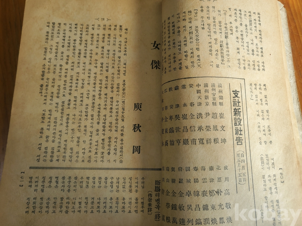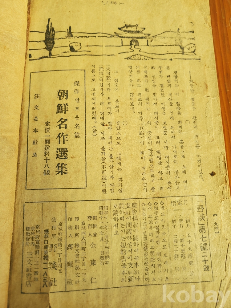 야담 7호(2권 7호), 야담사, 1936년 7월호, 194쪽, 한글 표기, 상태 중(앞뒤 표지와 목차 일부 낙장), 사진 참조