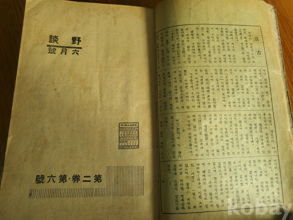 1. 야담 6호(2권 6호), 야담사, 1936년 6월호, 쪽수(11쪽~188쪽), 한글 표기, 상태 중(앞뒤 표지, 목차 낙장), 사진 참조
