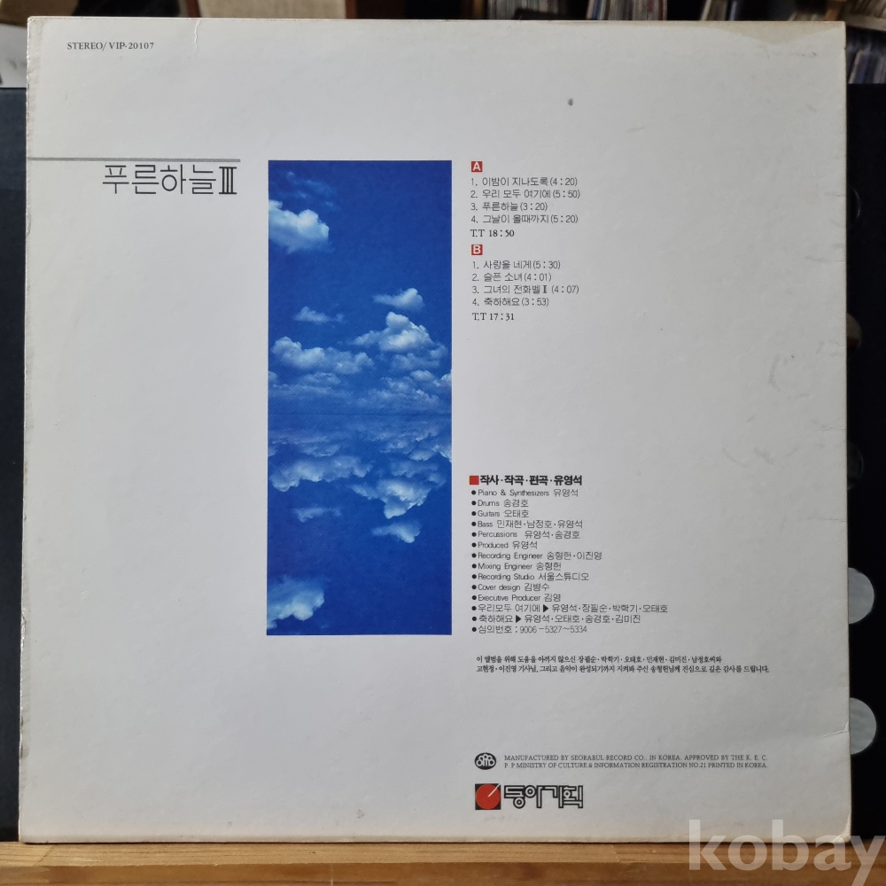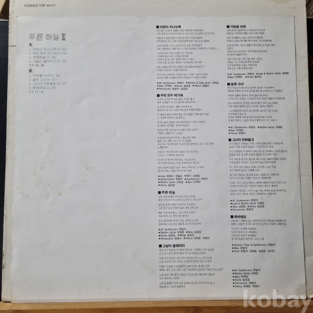 푸른하늘 3집 [이밤이지나도록,우리모두여기에,푸른하늘] 1990년초반
