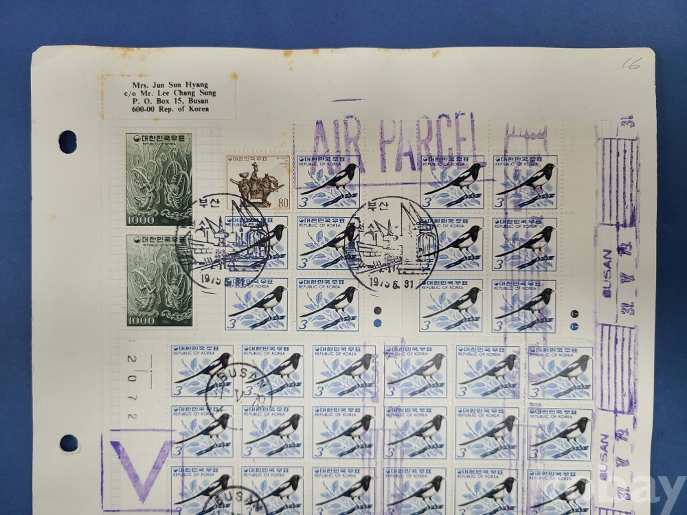 79년 제2차그라비아 3원 까치 41매,1000원 2매 등 첩부 리프,부산 등기항공곺포인,보험취급인, 외체인,로라인,관광인