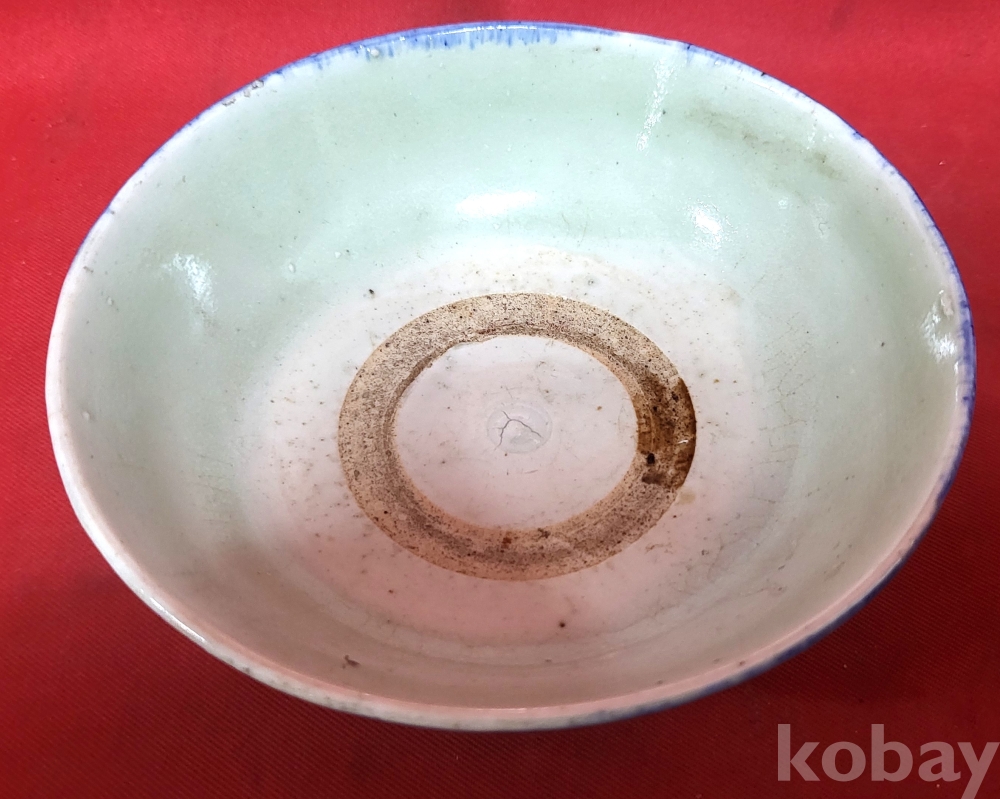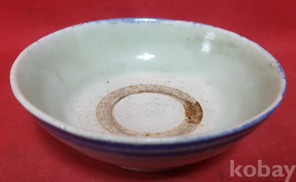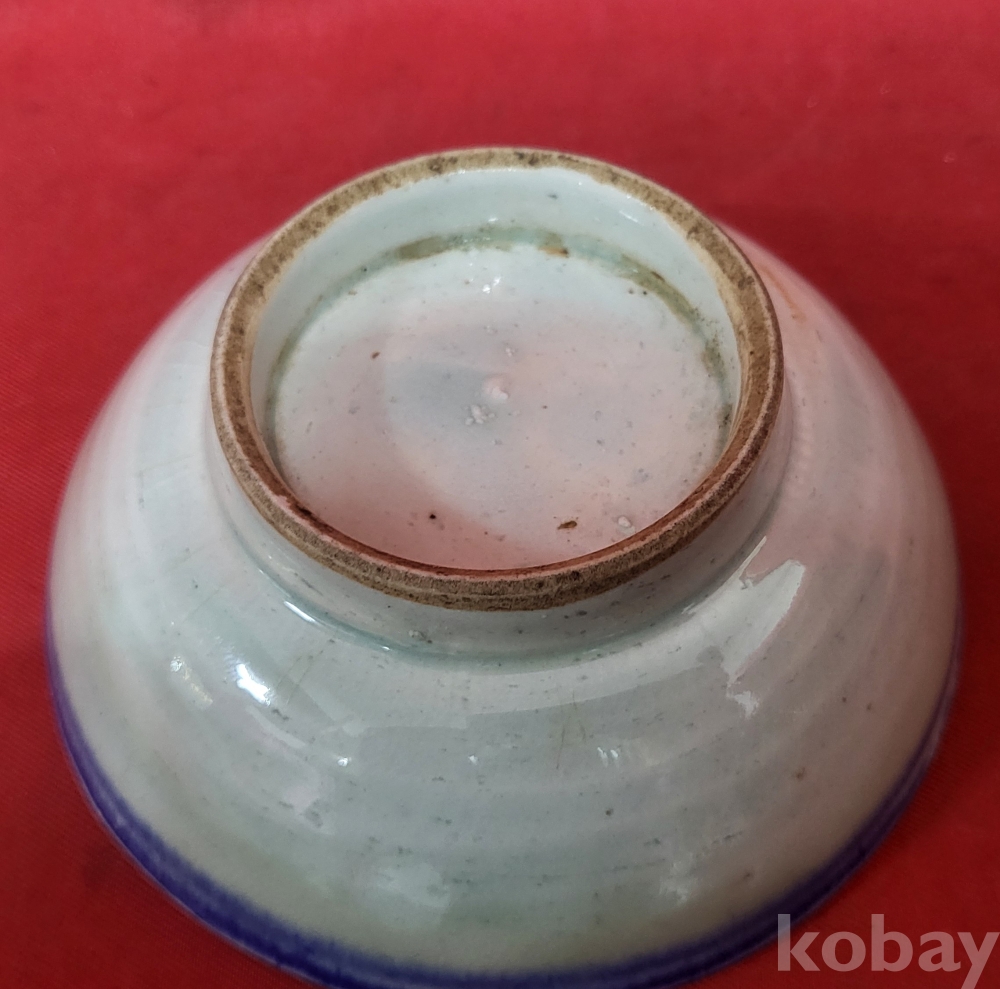 강점기 연대 갖춘 청화 줄(線)문양 완입니다,