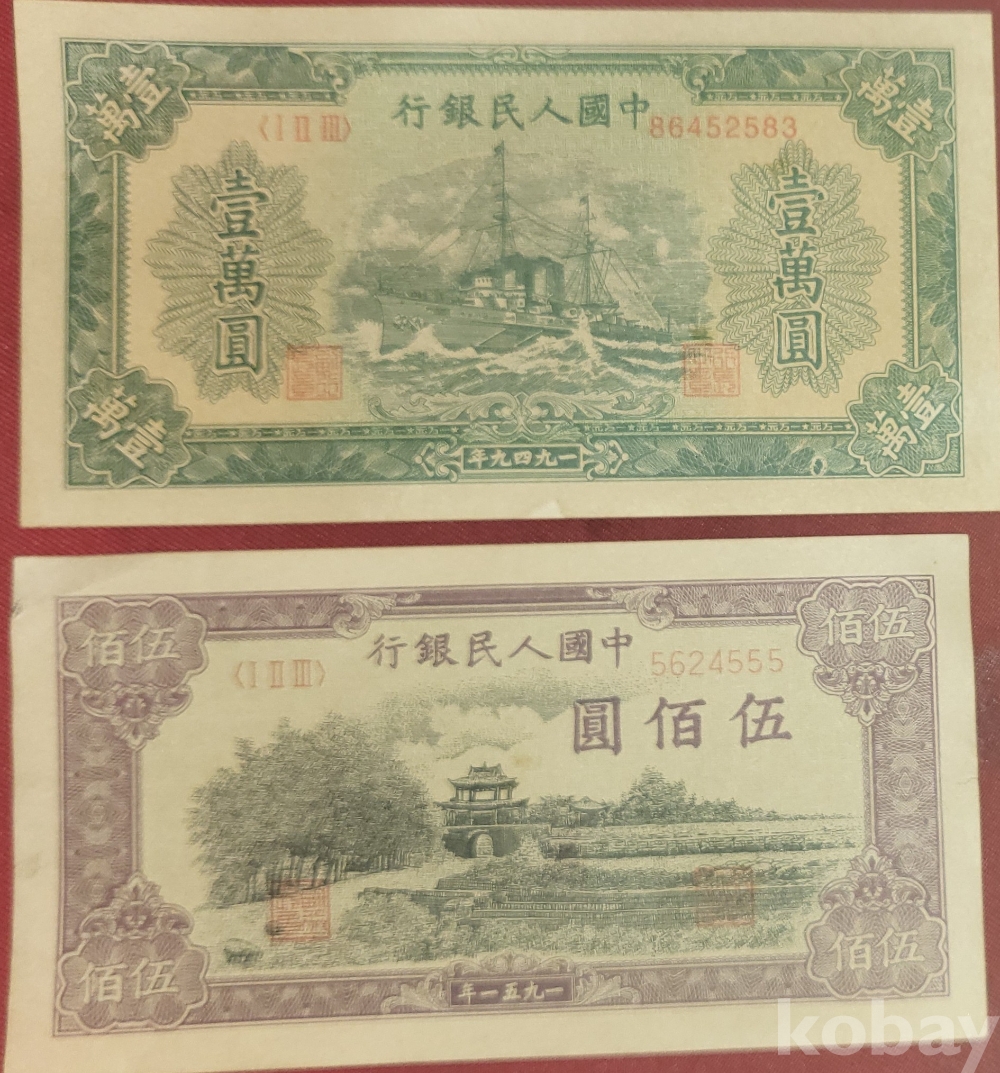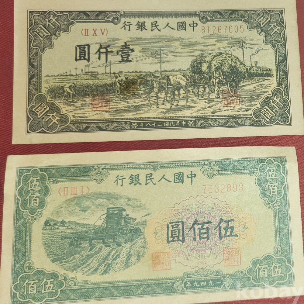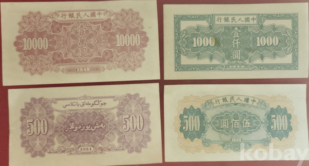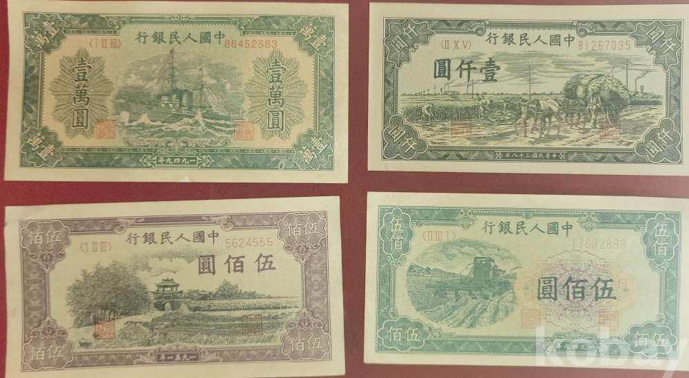 Tㅡ1ㅡ4호 다섯下 스치 번 /////// 중국 돈으로 보이는 지폐 4장입니다,
