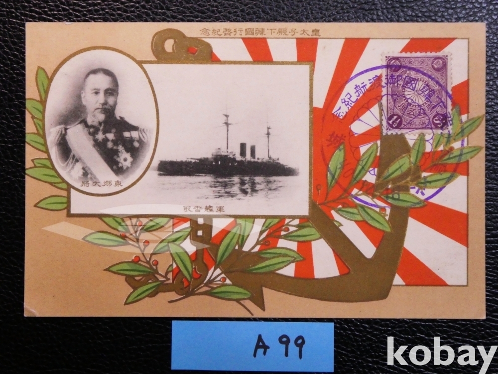 ▣도고 헤이하치로와 군함 카토리호(황태자 승선함), 일제강점기 사진엽서, 그림엽서, 회엽서.A99
