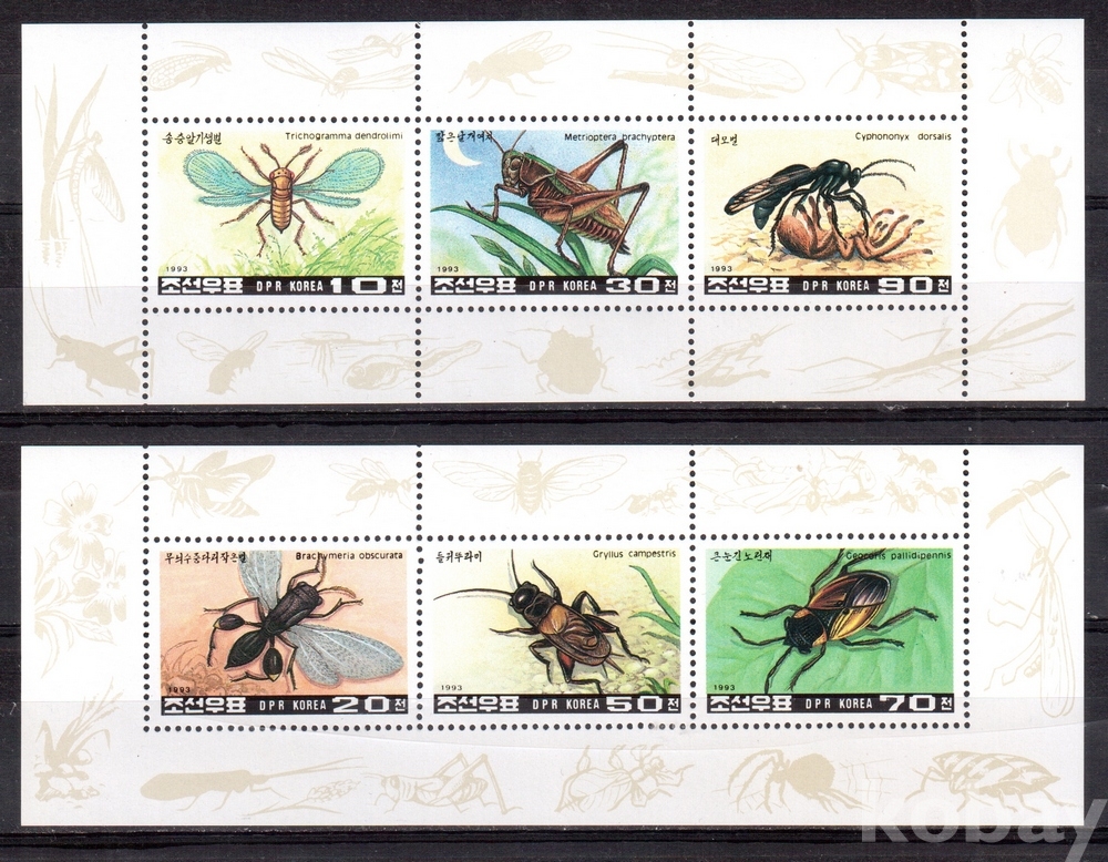 (곤충) 북한 1993.5.10 곤충 2 sheetlet of 3 MNH