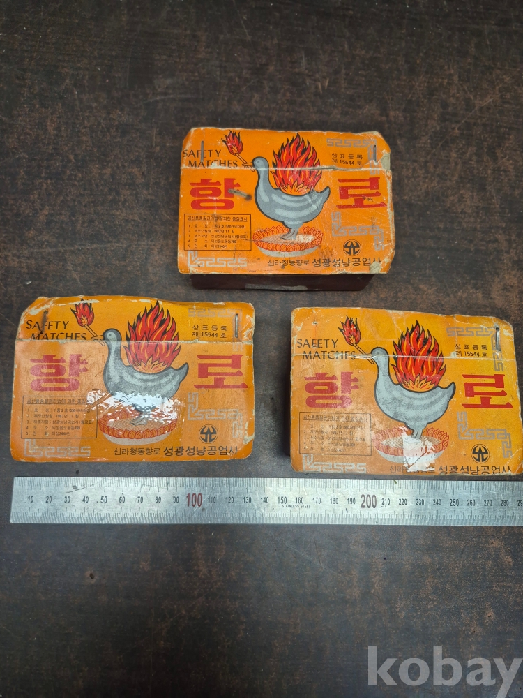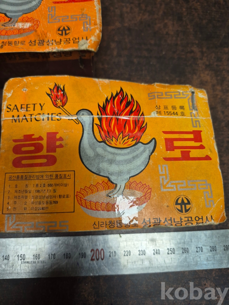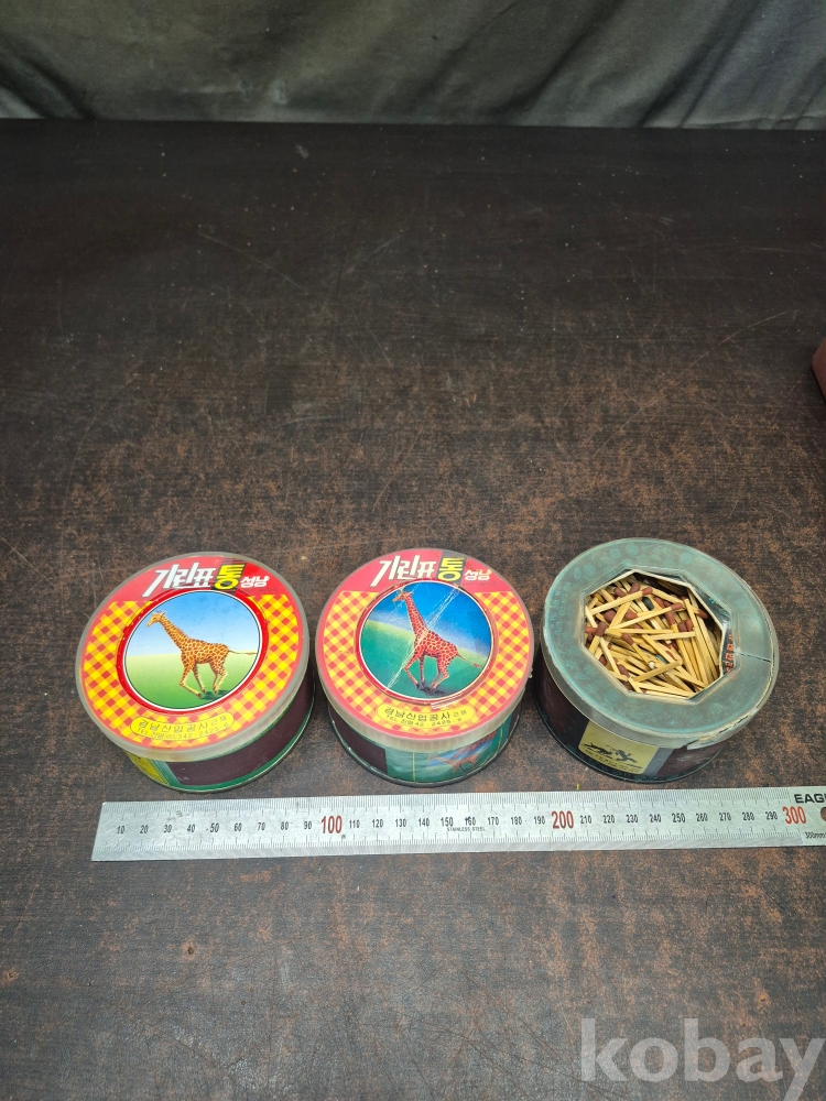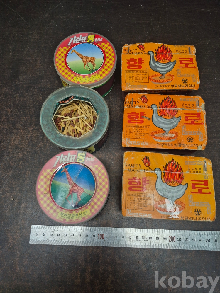 기린표 통성냥 사용제 1점 미사용제 2점 3 점 1987년 향로 통성냥 미사용품 3점 총 6점 일괄 10*10*5