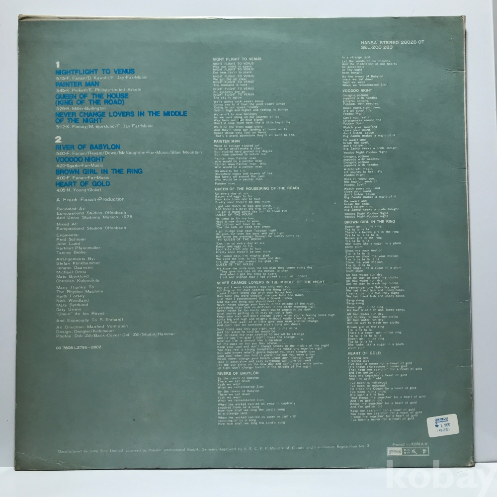 | 자켓상태 | EX : 약간의 마모, 모서리 찢김 존재 | 음반상태 | EX : 재생에 영향 없는 가벼운 기스 존재 | 발매정보 | 알수없음 | 가사지여부 | 무 |