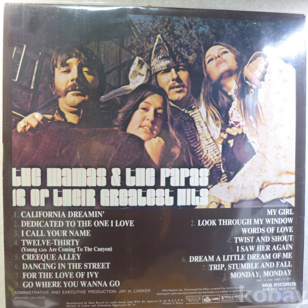 (LP판)마마스 앤 파파스 (MONDAY,MONDAY/ CALIFORNIA DREAMIN 등)