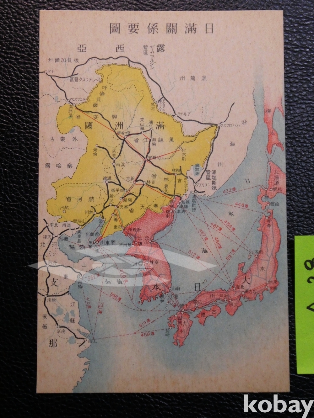 ▣<일제강점기 사진엽서: 일만관계요도 회엽서>, 한반도 중심의 동북아시아 지도와 항로, 해로, 항공로, 철로 노선 지도, 사진엽서, 회엽서, 귀함.A28
