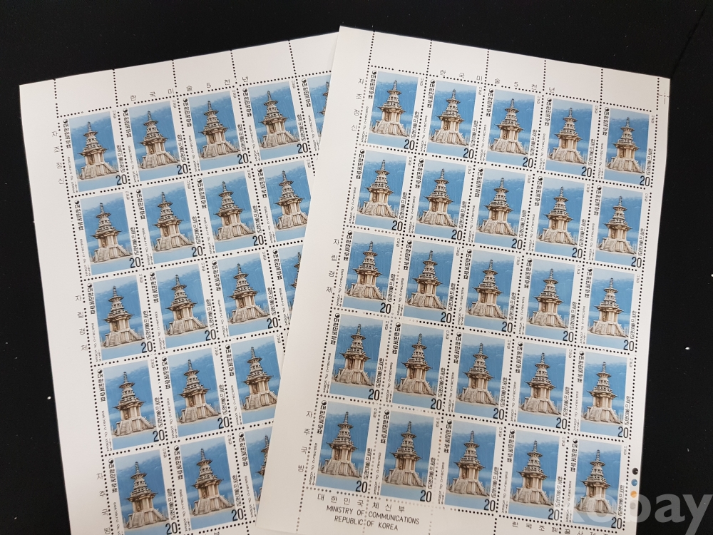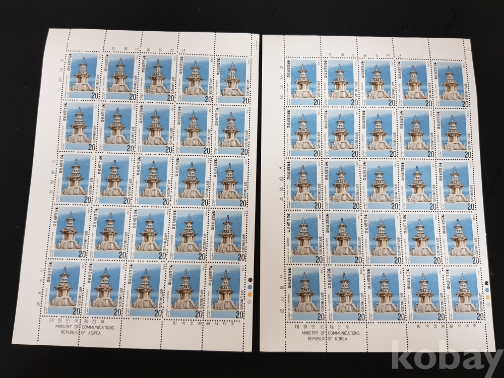 - 미사용 1979년 한국미술 5000년 제 1차 다보탑 전지 2매 일괄